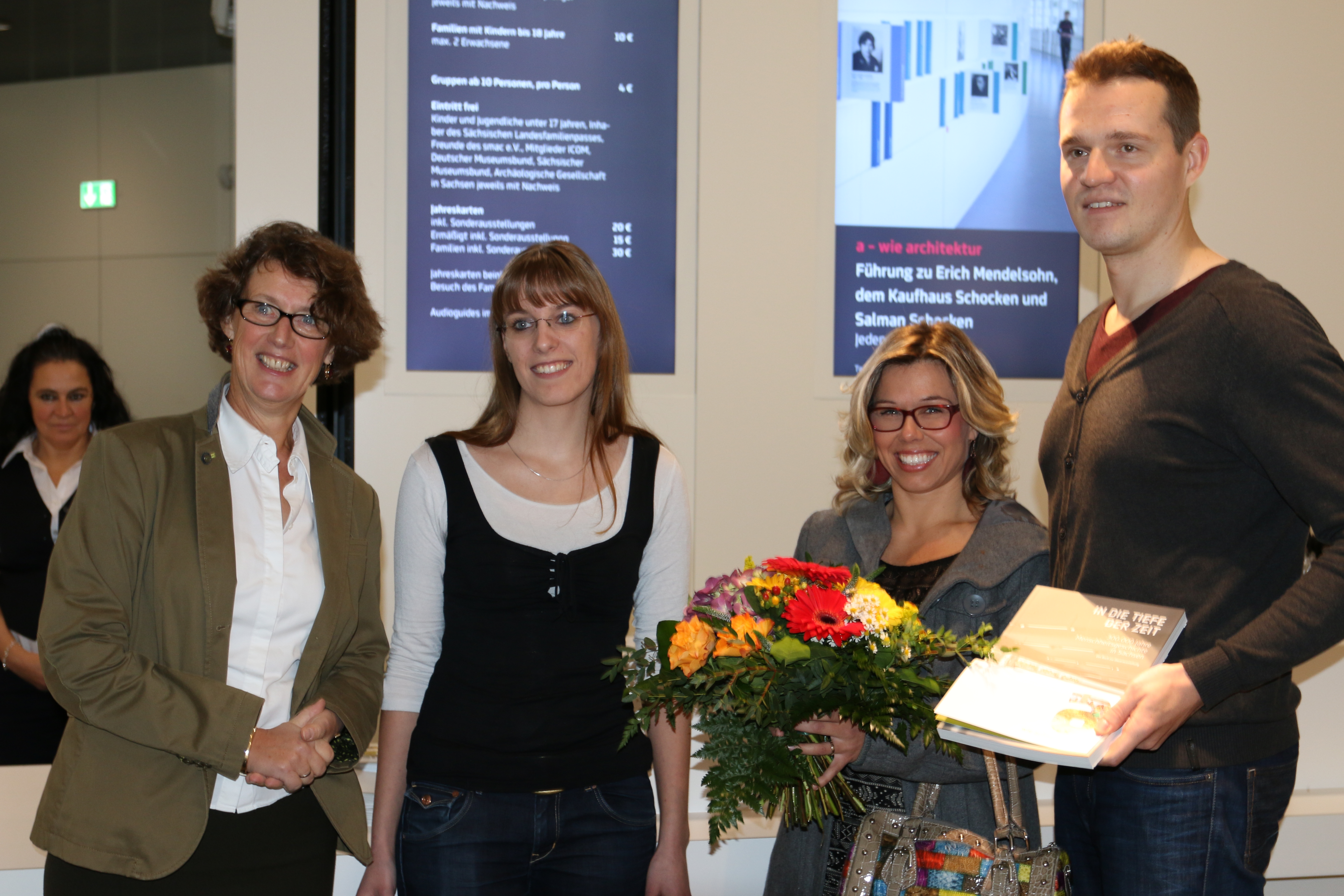 Museumsdirektorin Sabine Wolfram, Mitarbeiterin Besucherservice Nancy Müller mit der 50.000sten Besucherin Stephanie Ringhut und ihrem Partner Martin Löser (v.l.n.r.)