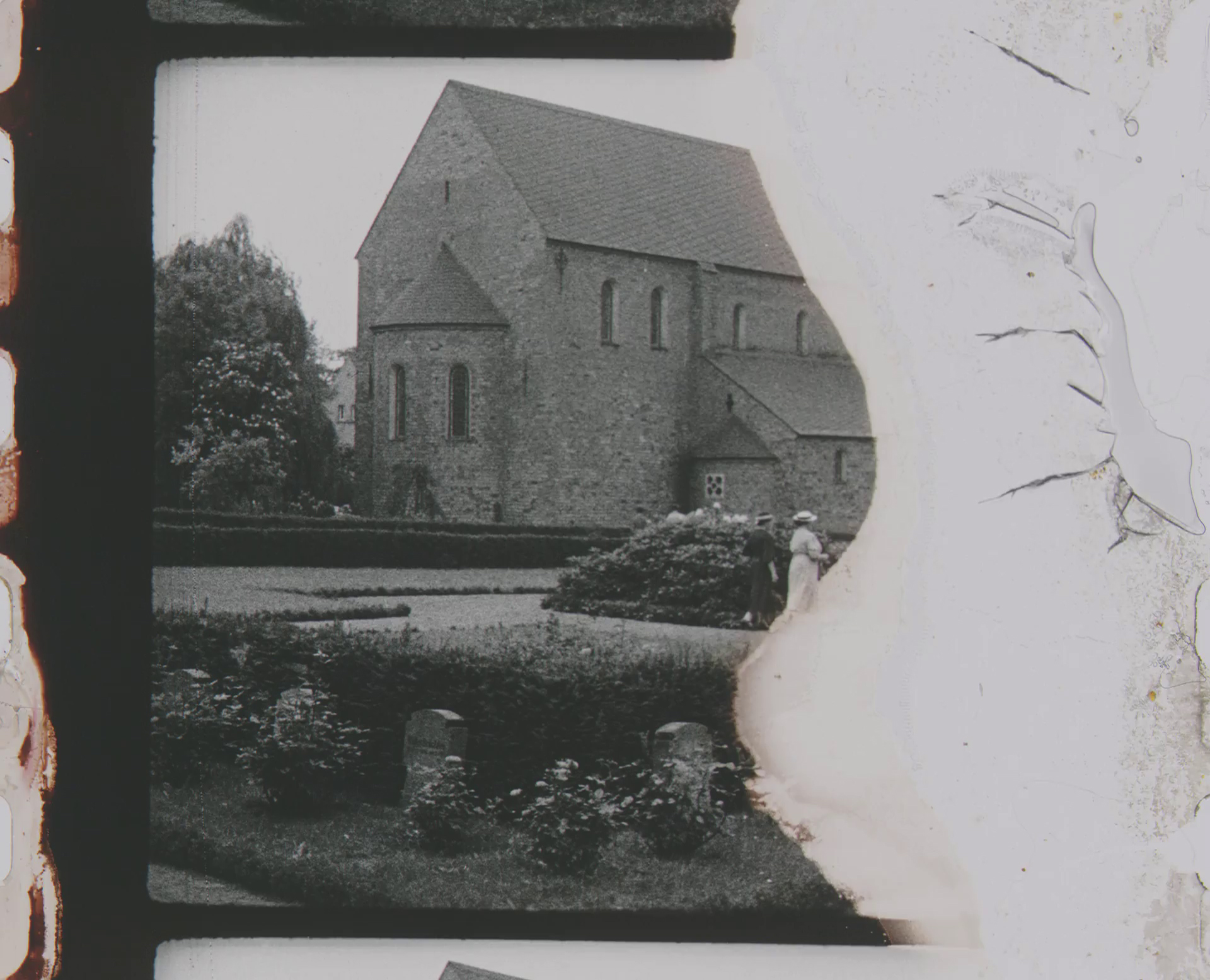 Zersetzungsschäden an der historischen 35mm-Filmkopie von „800 Jahre Borna“ (1938) wurden im Rahmen des Programms zu Sicherung des audio-visuellen Erbes in Sachsen digital restauriert.