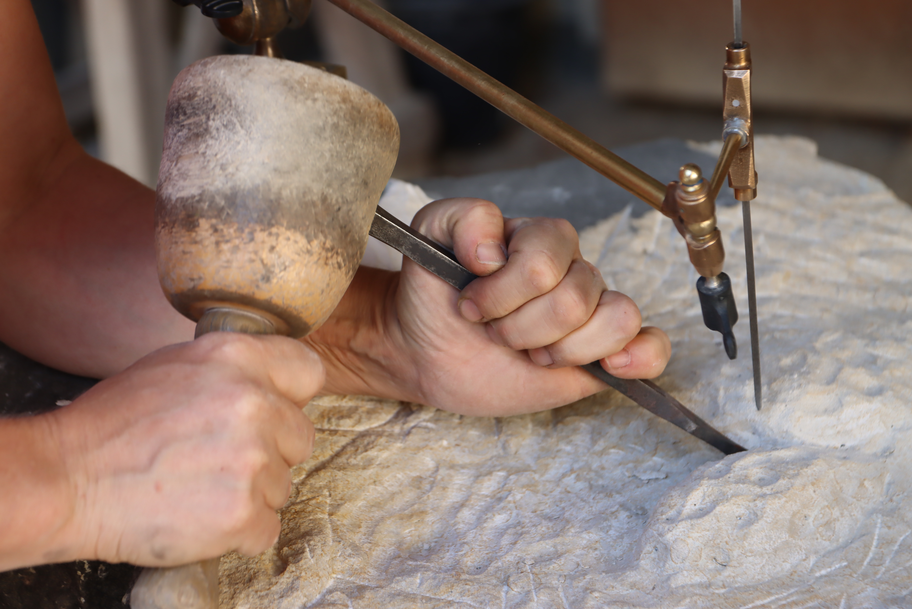 Steinmetz bei der Arbeit (© Zwingerbauhütte)