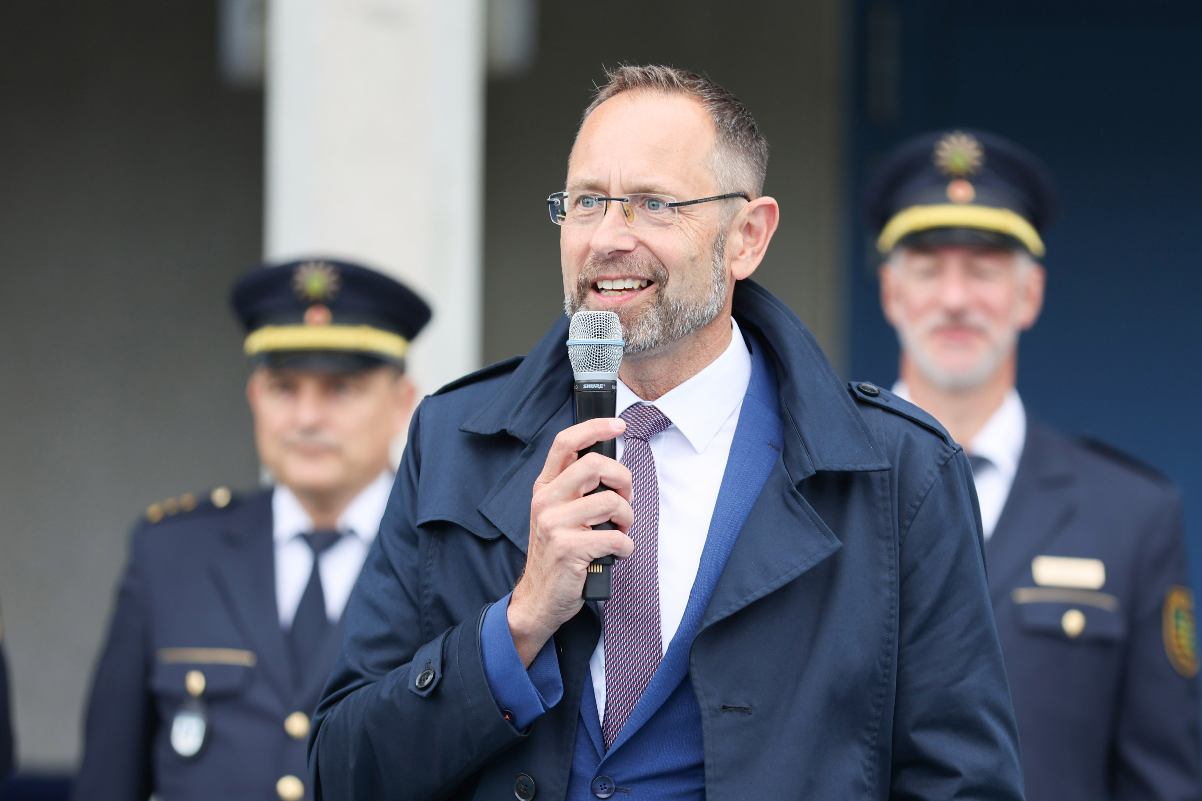 Rektor Dirk Benkendorff begrüßt die Sportlerinnen und Sportler zur 15. Polizeilandesmeisterschaft Leichtathletik