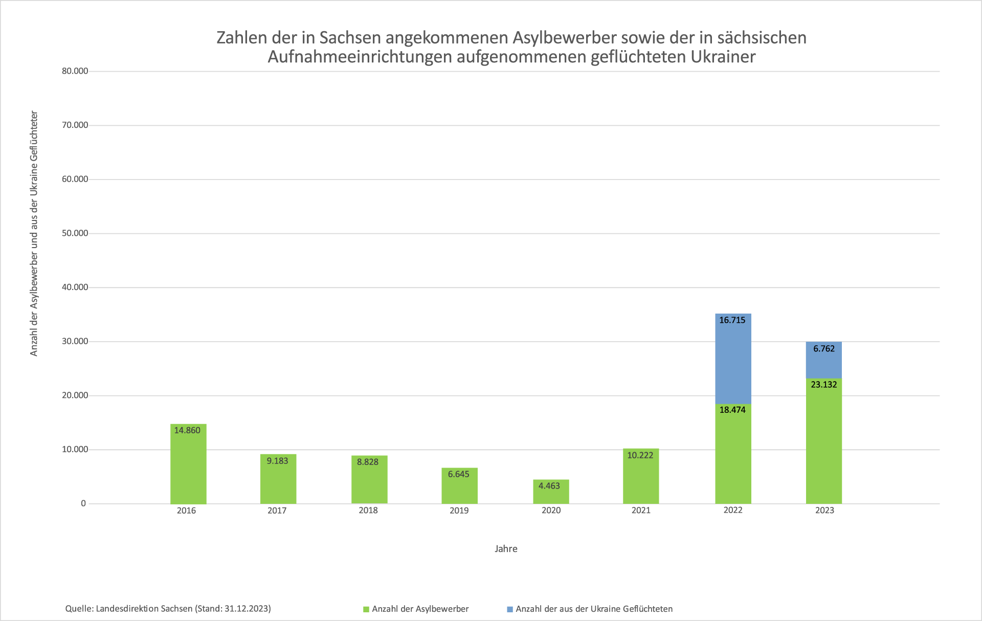 Foto: Zahlen der in Sachsen angekommenen Asylbewerber sowie der in sächsischen Aufnahmeeinrichtungen aufgenommenen Schutzsuchenden aus der Ukraine