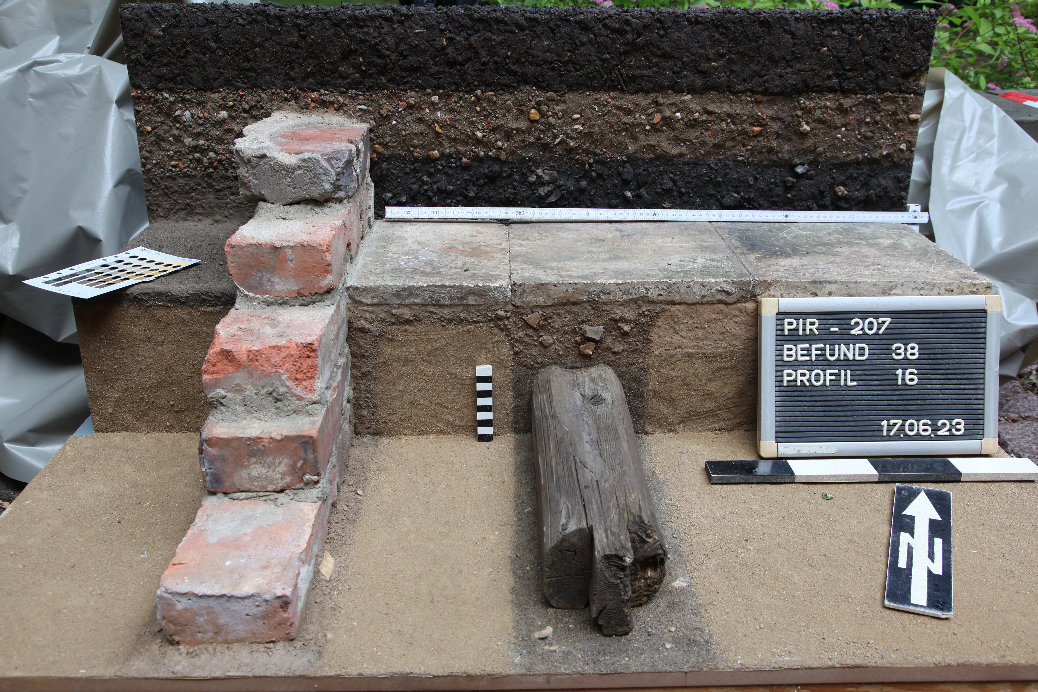 Was ist älter, was ist jünger und wie findet man es heraus. Die Verfärbungen der Erde verraten es meist – und die Fachleute den Besuchenden des Archäologischen Marktplatzes. (© Landesamt für Archäologie Sachsen)