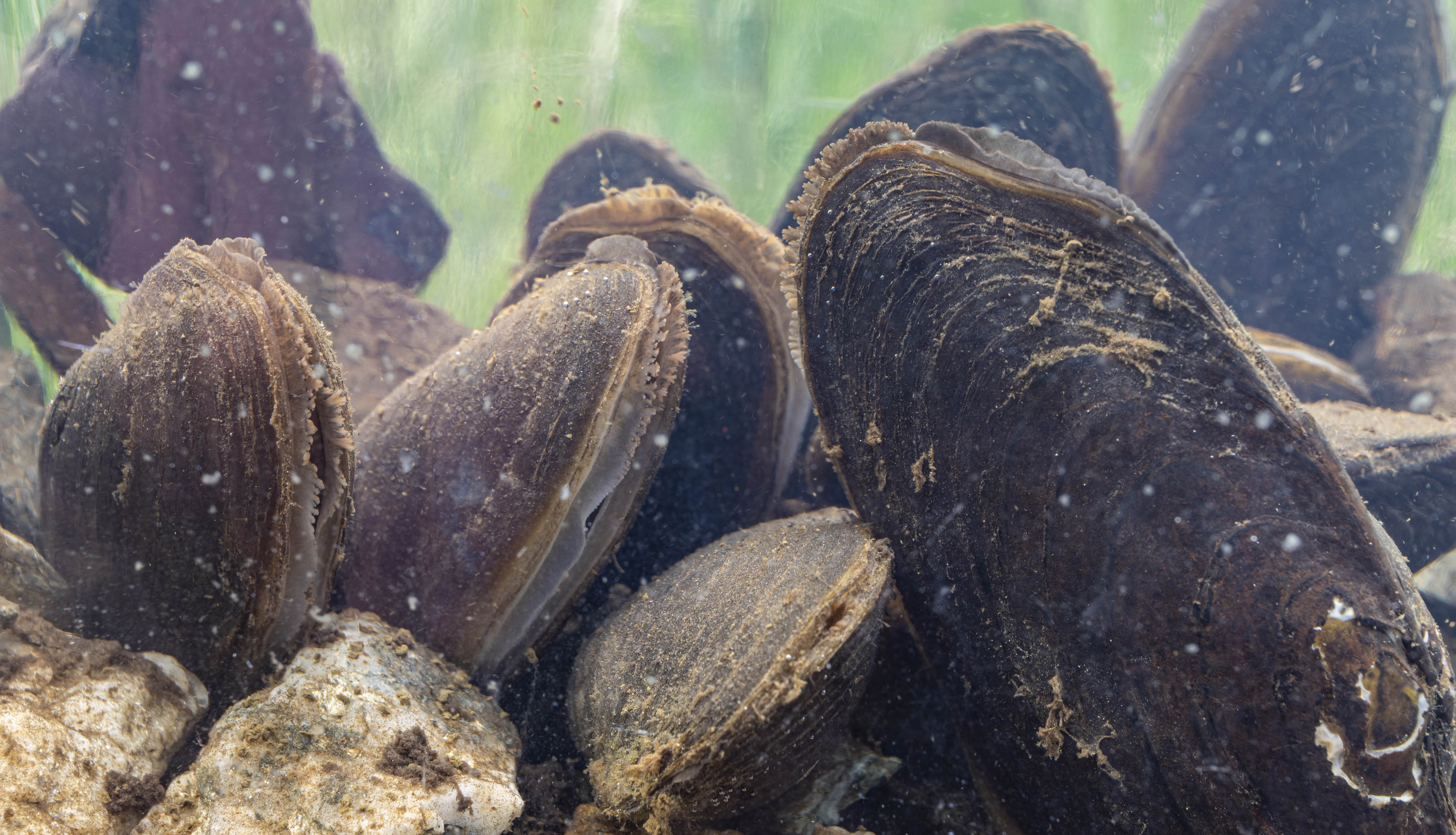 Vom Aussterben bedrohte Flussperlmuschel im Aquarium.