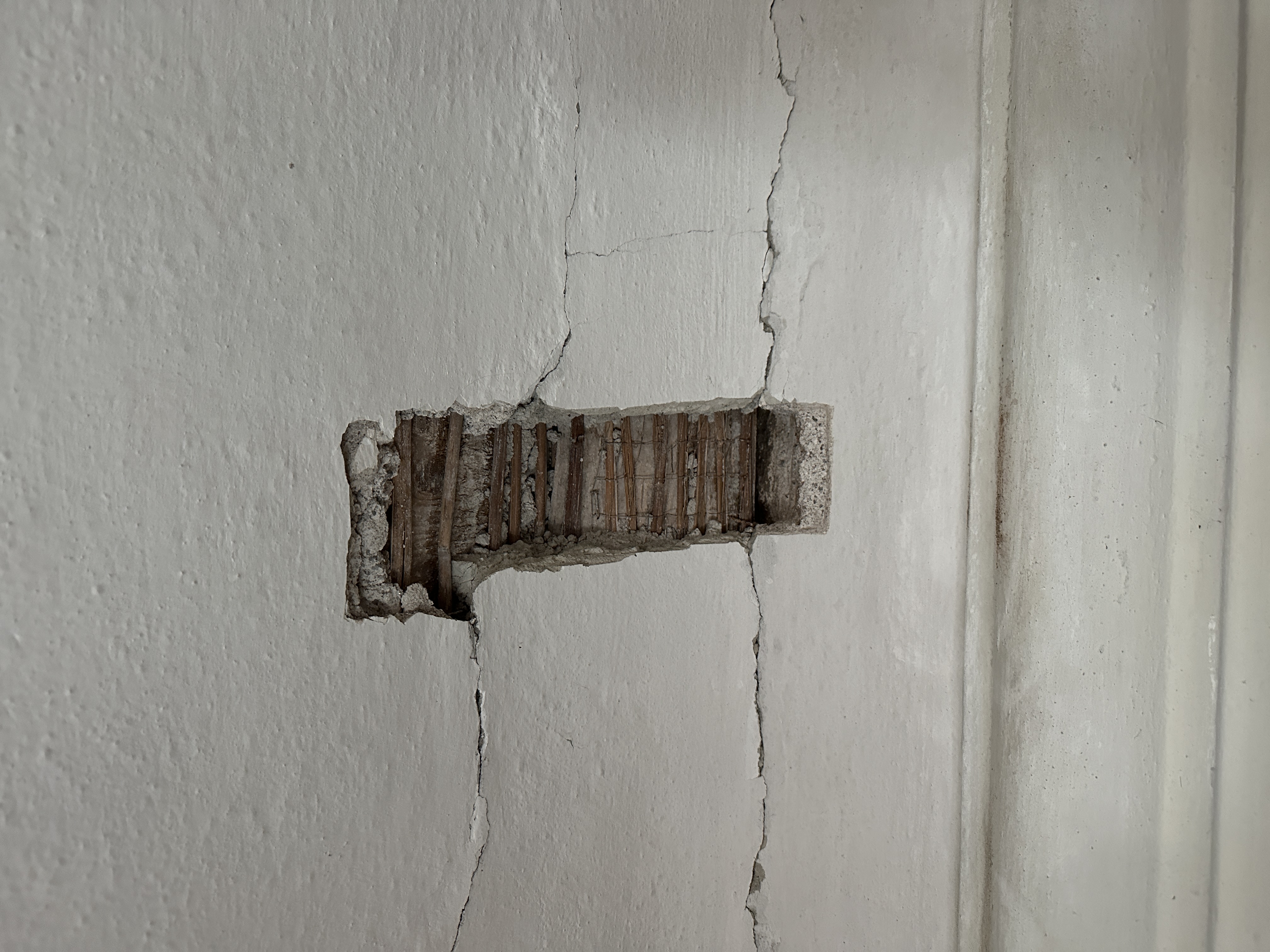 Leubsdorf, Kirche, bemalte Putzdecke mit Schadensbild (© Landesamt für Denkmalpflege Sachsen, Katja Matauschek)