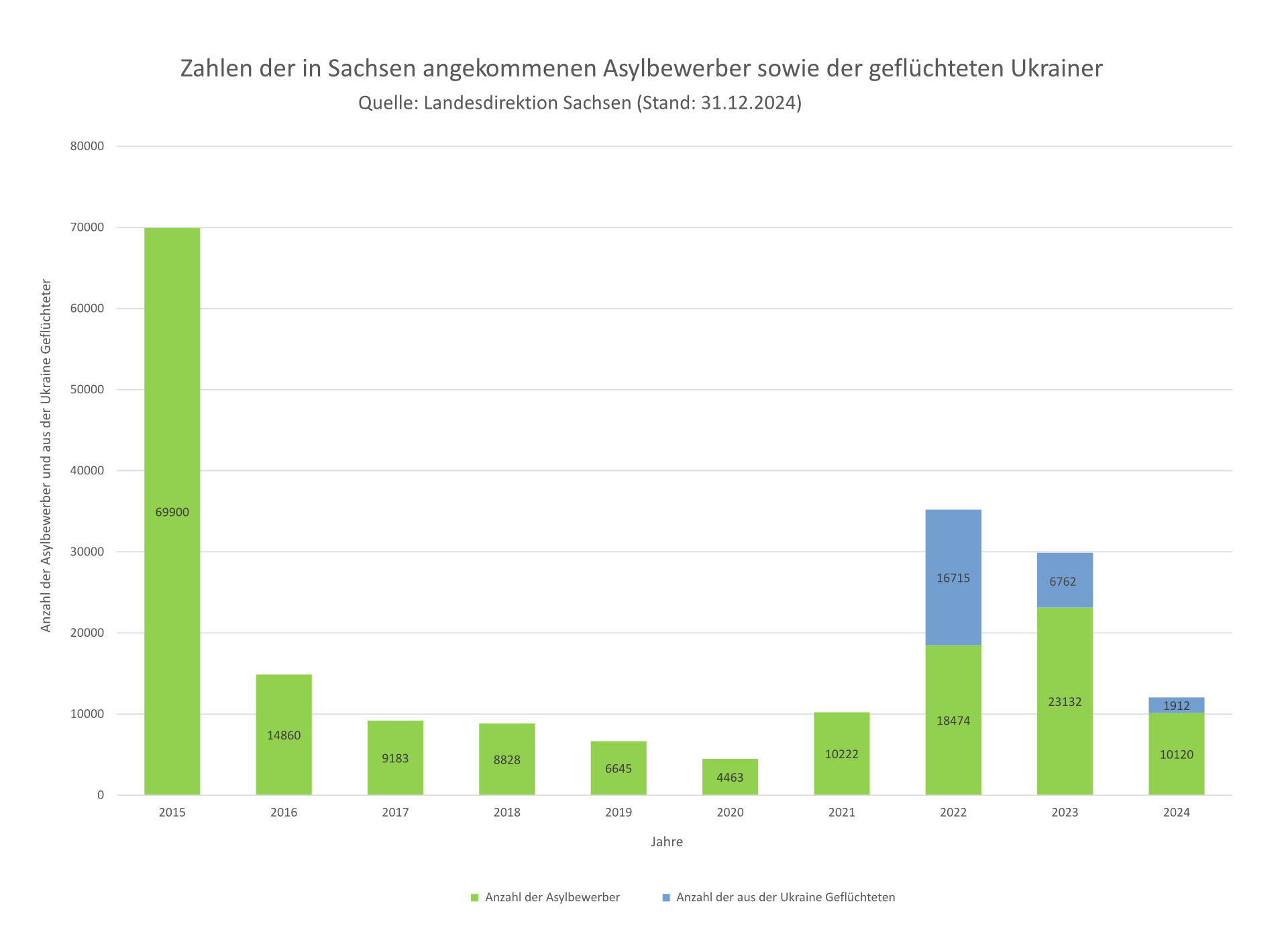 Foto: Zahlen der in Sachsen angekommenen Asylbewerber sowie der geflüchteten Ukrainer (© Landesdirektion Sachsen)