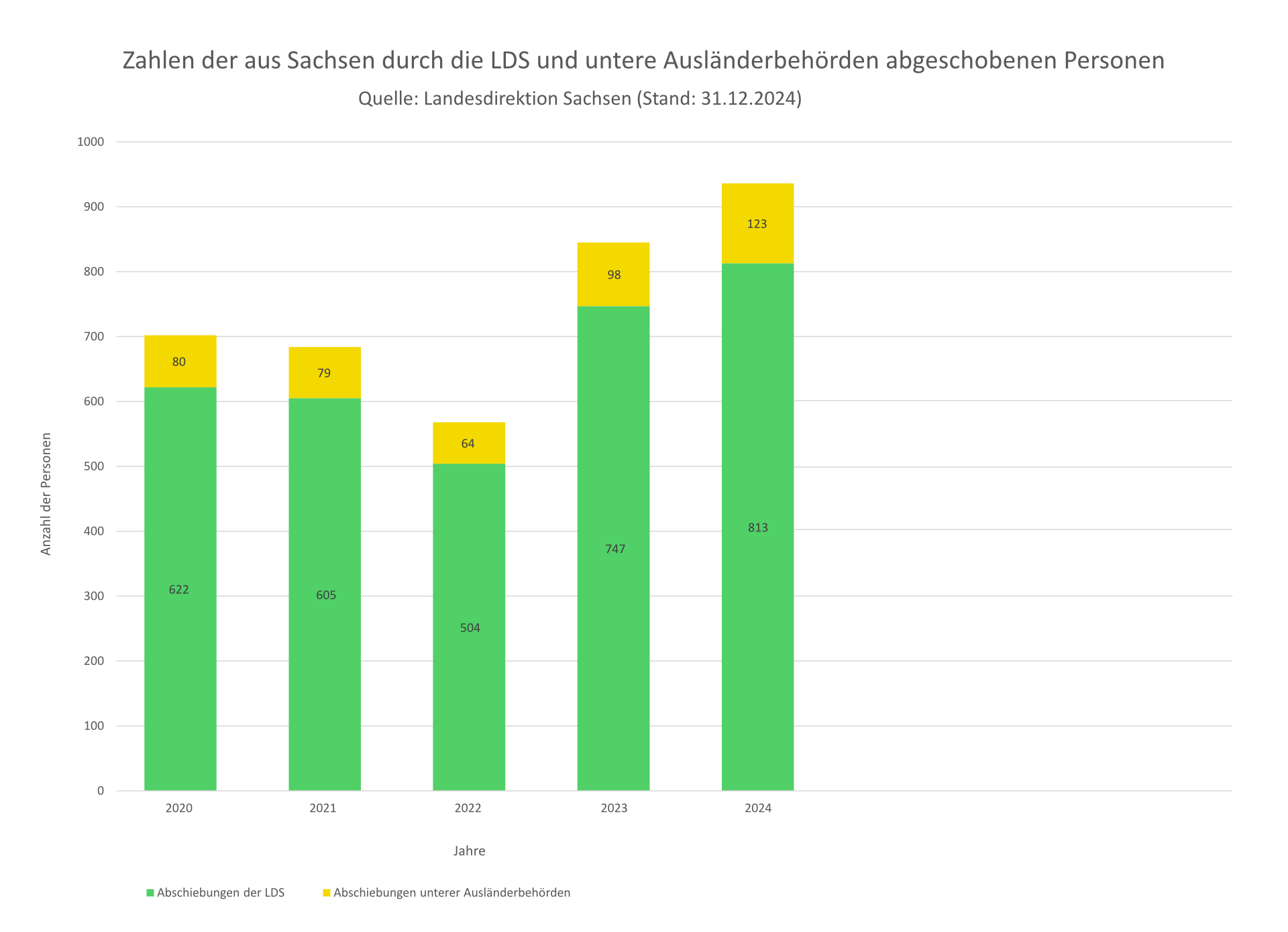 Zahlen der aus Sachsen durch die LDS und untere Ausländerbehörden abgeschobenen Personen (© Landesdirektion Sachsen