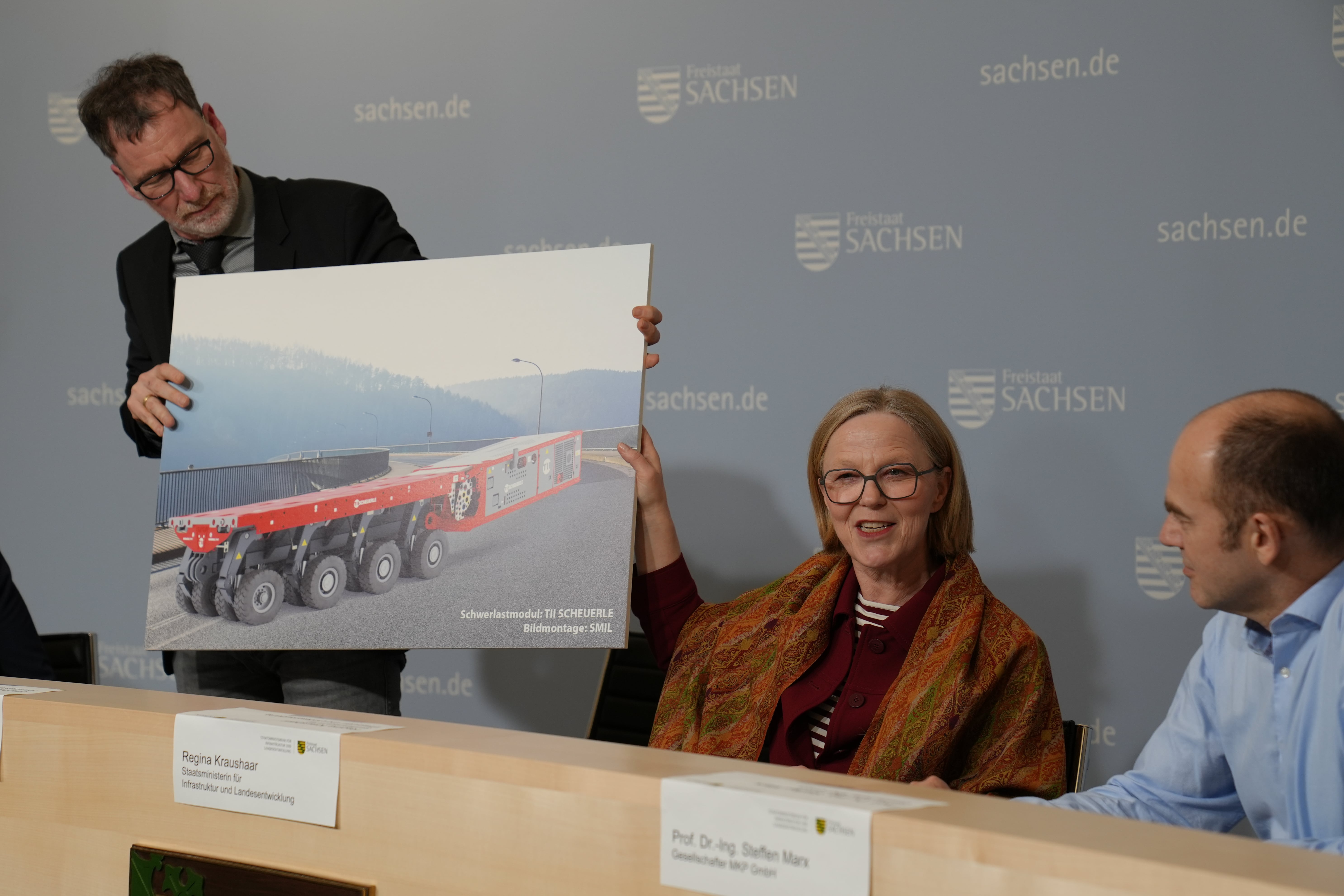 Foto: Pressekonferenz: Staatsministerin Kraushaar zeigt Schwerlastmodule-Anschaubild