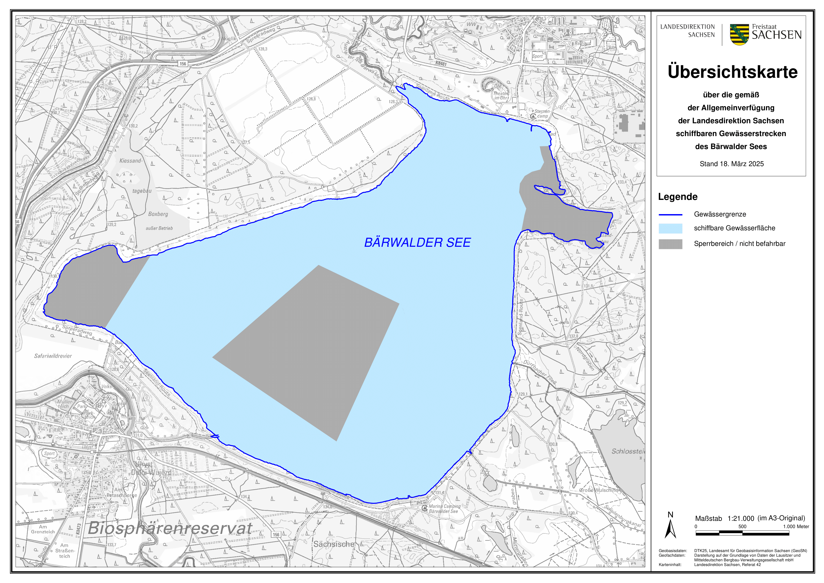 Übersichtskarte Schiffbarkeit Bärwalder See (© Landesdirektion Sachsen)
