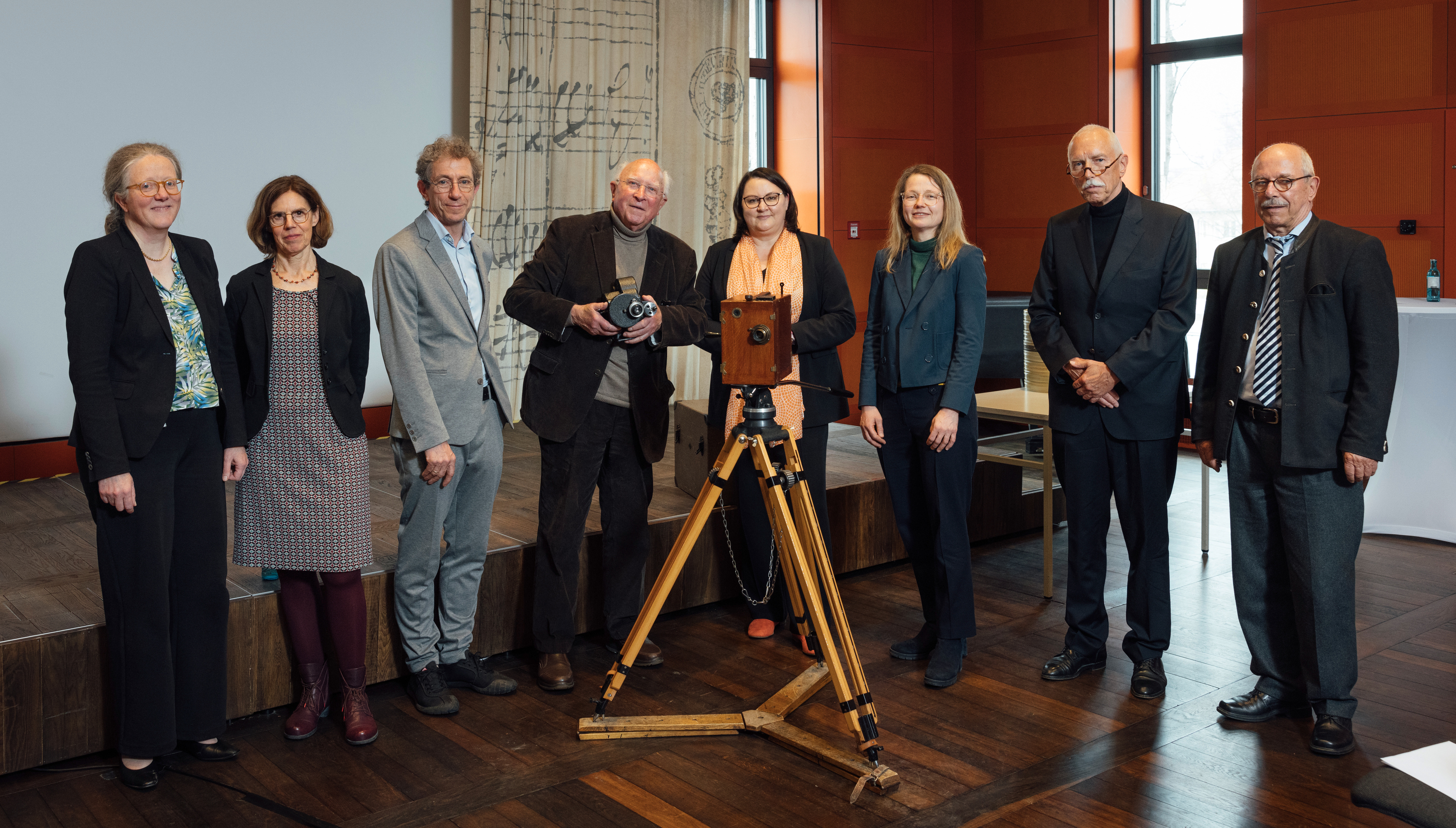 Die Protagonist:innen der Pressekonferenz am 26.3.2025 (v.l.n.r.): Prof. Dr. Barbara Wiermann, Prof. Dr. Ira Spieker, Roland Schwarz, Ernst Hirsch, Katrin Stump, Annekatrin Klepsch, Dr. Alexander von Ardenne, Thomas von Ardenne. (© Oliver Killig)