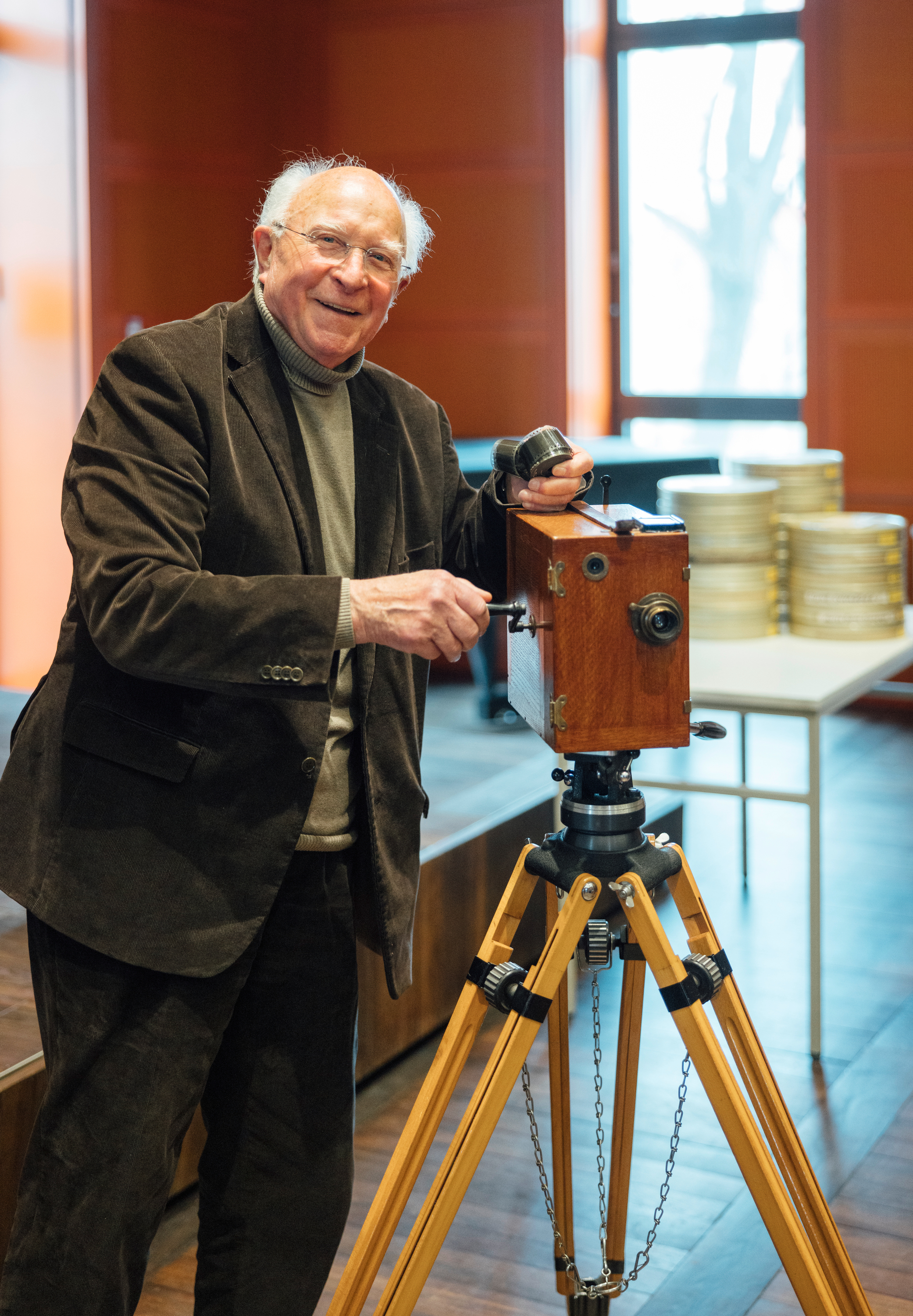 Foto: Ernst Hirsch noch einmal mit einer der historischen Kameras aus seiner Sammlung.