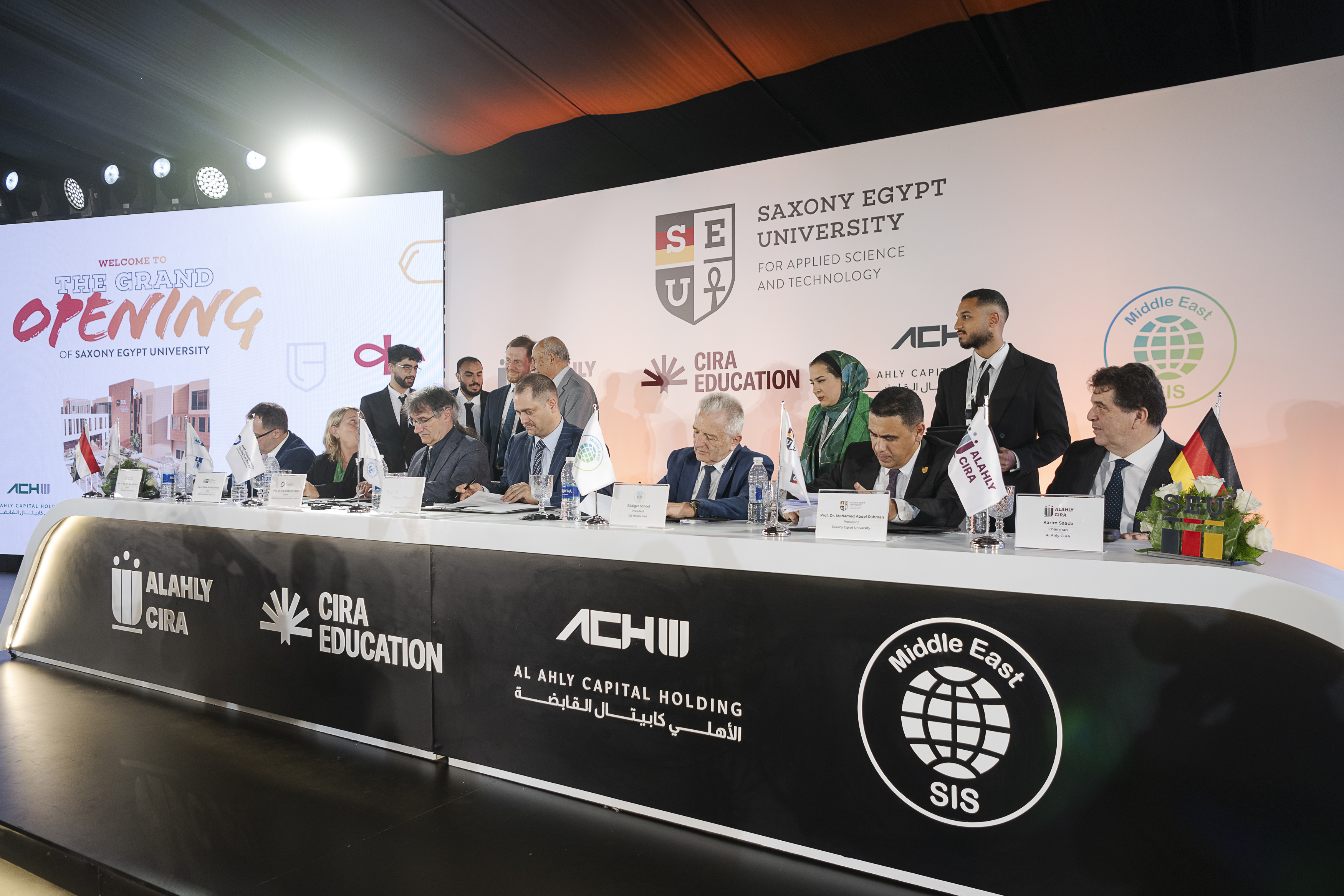 Unterzeichnung eines Memorandum of Understanding der (Pro-)Rektoren der Westsächsischen Hochschule Zwickau, TU Bergakademie Freiberg und Hochschule Zittau/Görlitz mit der Saxony Egypt University sowie der Saxony International School. Ziel der Absichtserklärung ist es, gemeinsame akademische und wissenschaftliche Aktivitäten zu fördern und den Austausch von wissenschaftlichem Personal sowie Studierenden zu ermöglichen.