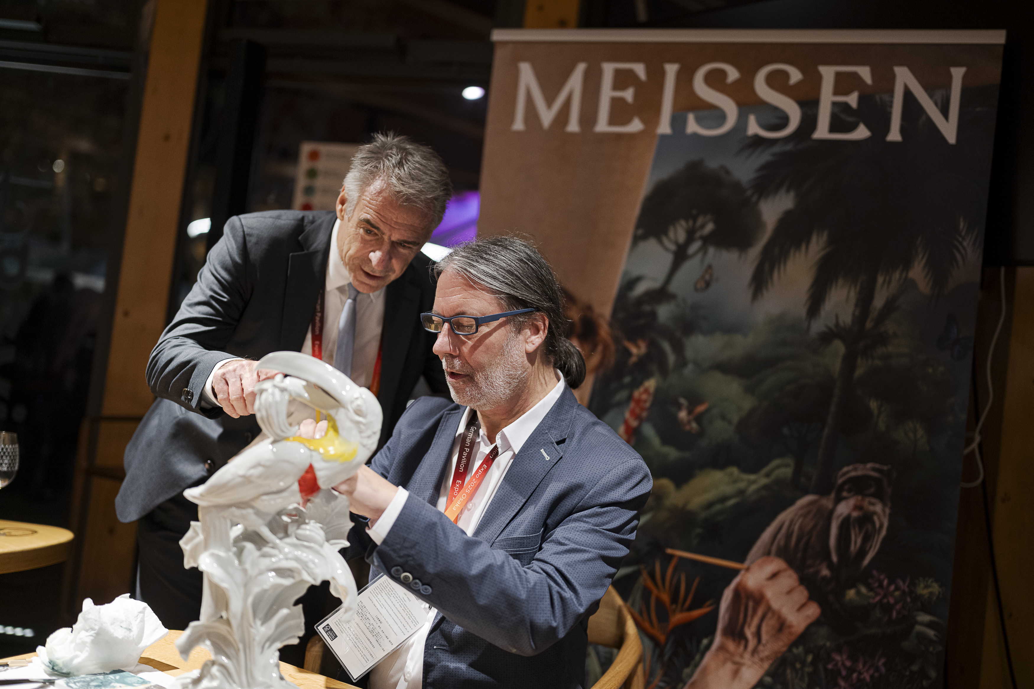 Präsentationsstand der Porzellan-Manufaktur Meissen auf dem Abendempfang anlässlich des Tages der Deutschen Einheit in Osaka. Ausrichter ist das deutsche Generalkonsulat Osaka-Kobe. Der Freistaat Sachsen ist das diesjährige Gastland.