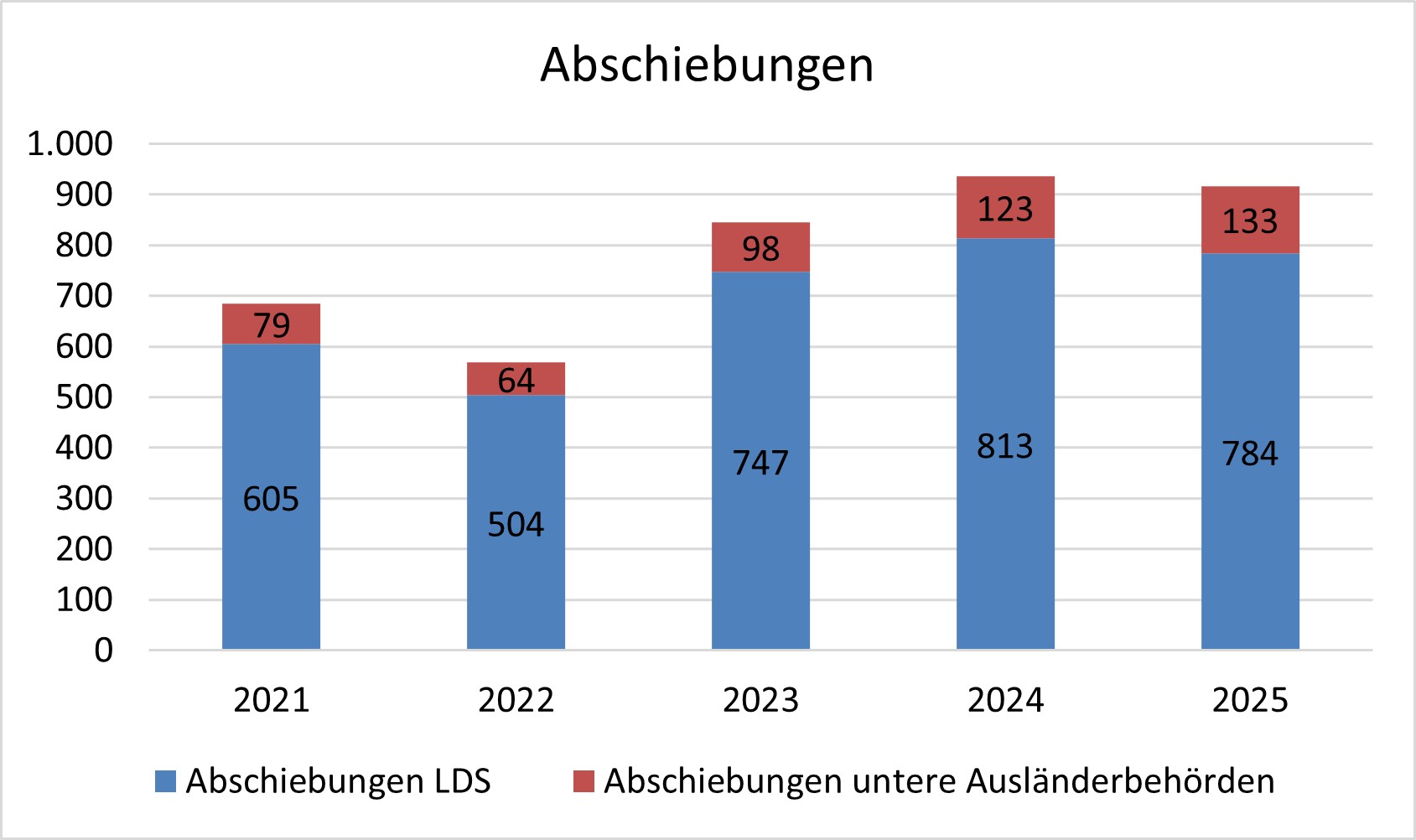 Zahlen der aus Sachsen durch die LDS und unteren Ausländerbehörden abgeschobene Personen (© Landesdirektion Sachsen)