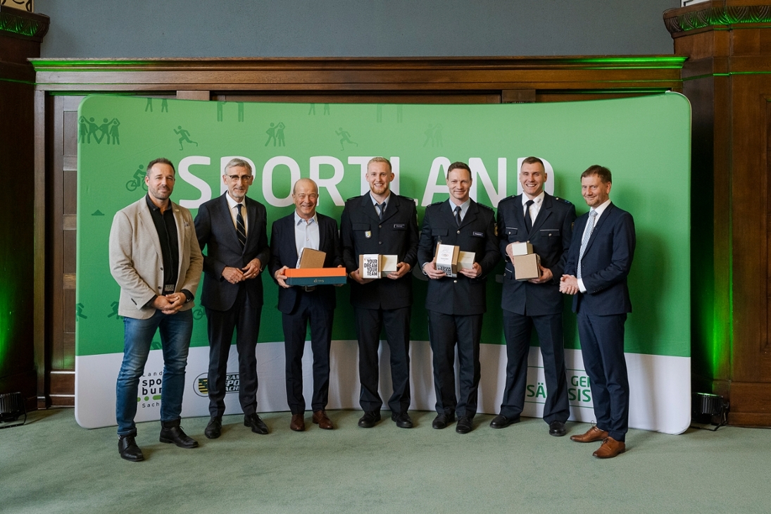 Ehrung von Francesco Friedrich, Felix Straub, Jörn Wenzel & Trainer Gerd Leopold durch Ministerpräsident Kretschmer, Staatsminister Schuster und Christian Pöhler (Leiter Olympiastützpunkt).