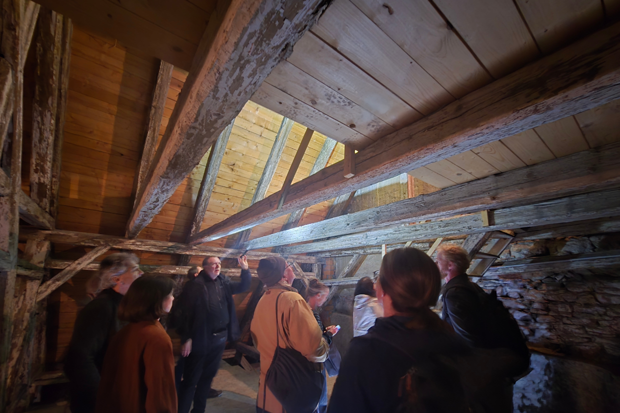 Über 100 Expertinnen und Experten aus Denkmalpflege, Wissenschaft und Baupraxis diskutierten auf der Abschlusstagung Fragen zum sommerlichen Wärmeschutz der in Sachsen vielerorts noch erhaltenen raumprägenden Deckengestaltungen. (© Landesamt für Denkmalpflege Sachsen, Sven Pank)