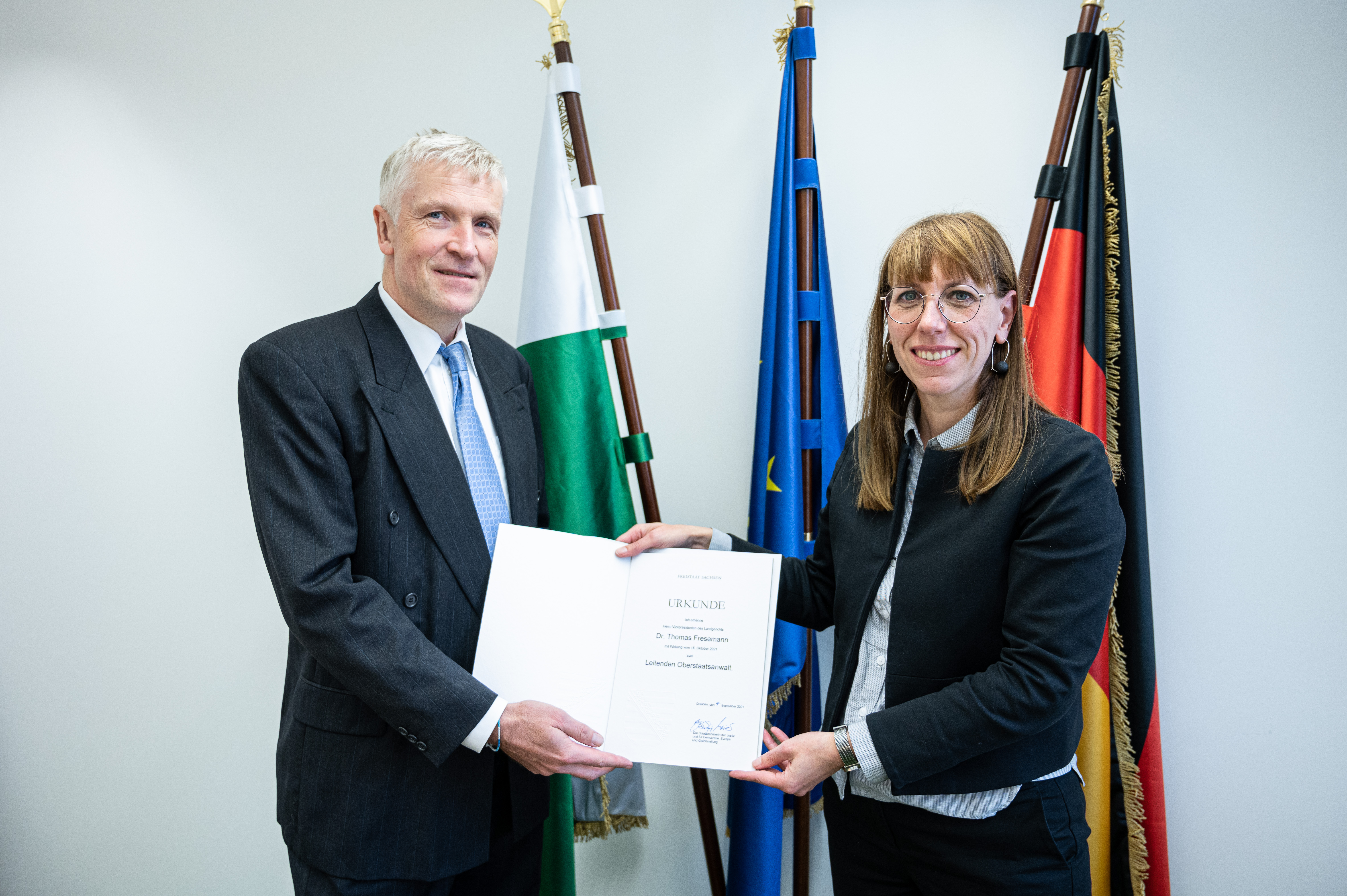 Mit Wirkung zum 15. Oktober 2021 wird Dr. Thomas Fresemann zum Leitenden Oberstaatsanwalt bei der Staatsanwaltschaft Görlitz ernannt.