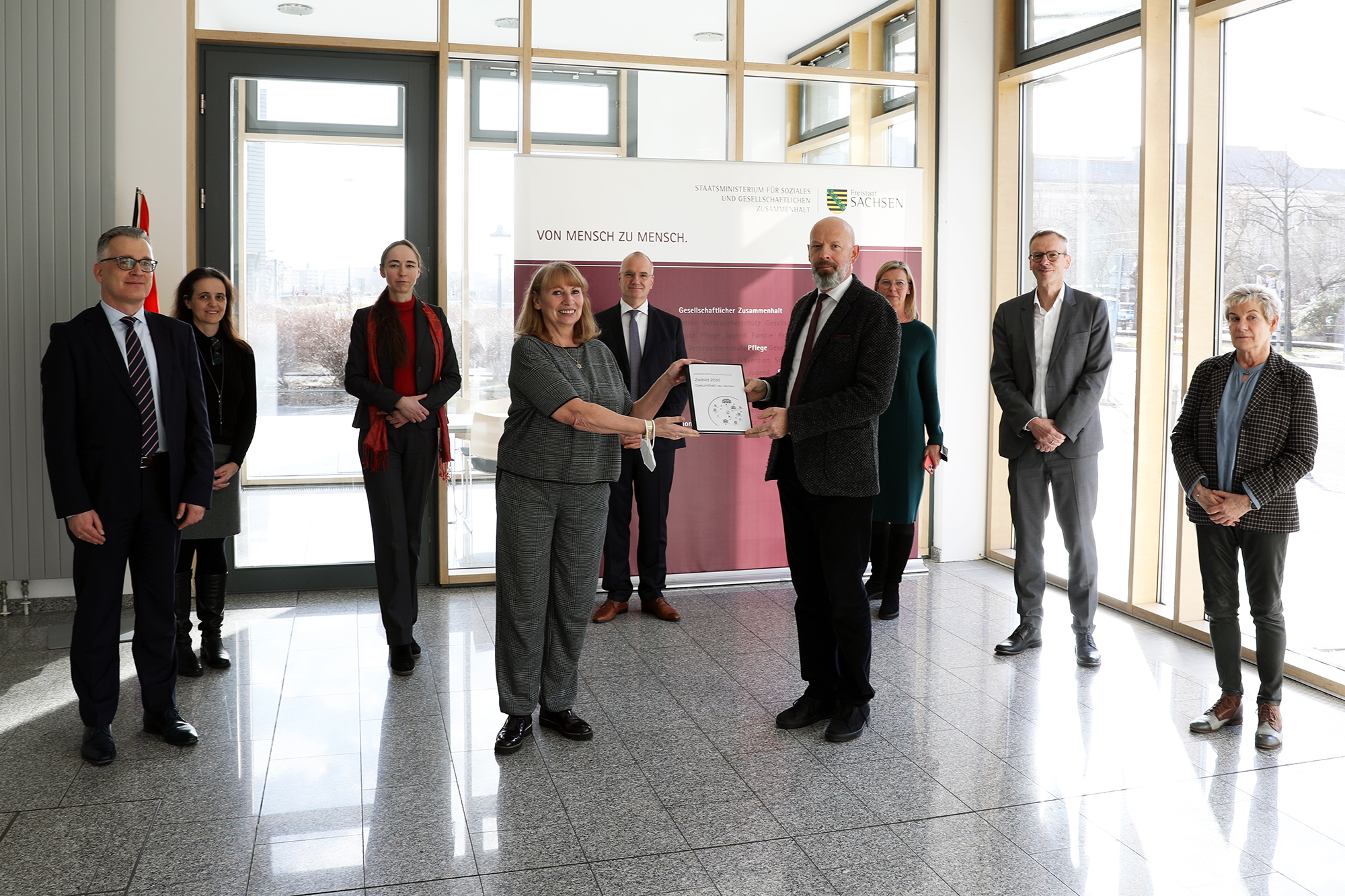 Am heutigen Montag, den 07. Februar 2022, überreichten Akteure der sächsischen Gesundheitslandschaft das »Zielbild 2030 – Sächsische Krankenhausversorgungslandschaft im Wandel« an Sozialministerin Petra Köpping. Darin legen sie dar, wie aus ihrer Sicht die medizinische Versorgung des Freistaates im Jahre 2030 aussehen soll.