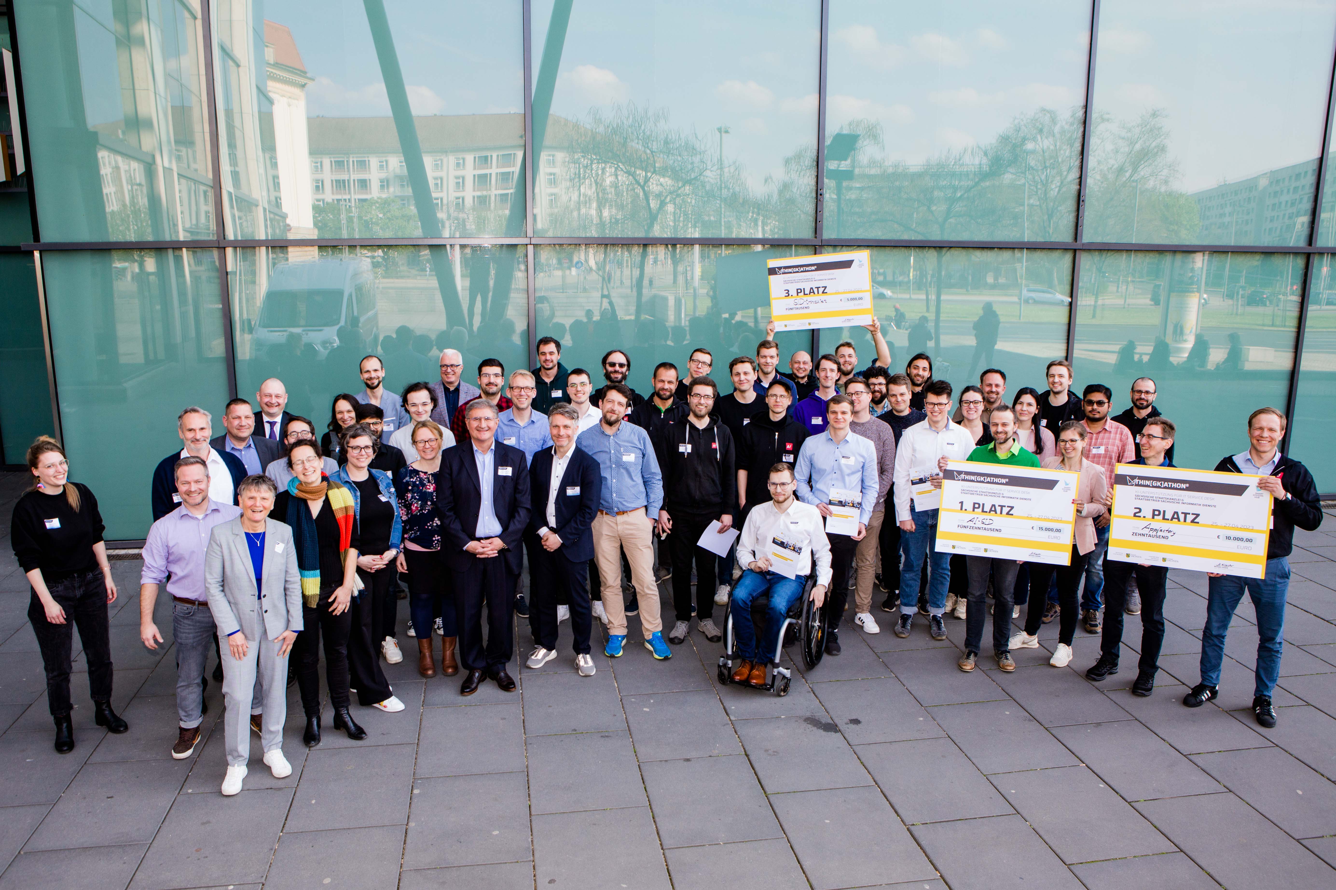 Das Team des Unternehmens Appsfactory wurde Zweiter. Platz drei ging an Team »SID-tronauten« der Unternehmen elevait und Fehr-Solutions. Ermittelt wurden die Sieger von einer fünfköpfigen Jury. Insgesamt erhielten die drei best-platzierten Teams ein Preisgeld von 30.000 €. Das Siegerteam präsentiert seine Lösung auf dem KI-Kongress der Sächsischen Staatsregierung am 25. Mai 2023 in Dresden einem fachkundigen Publikum.