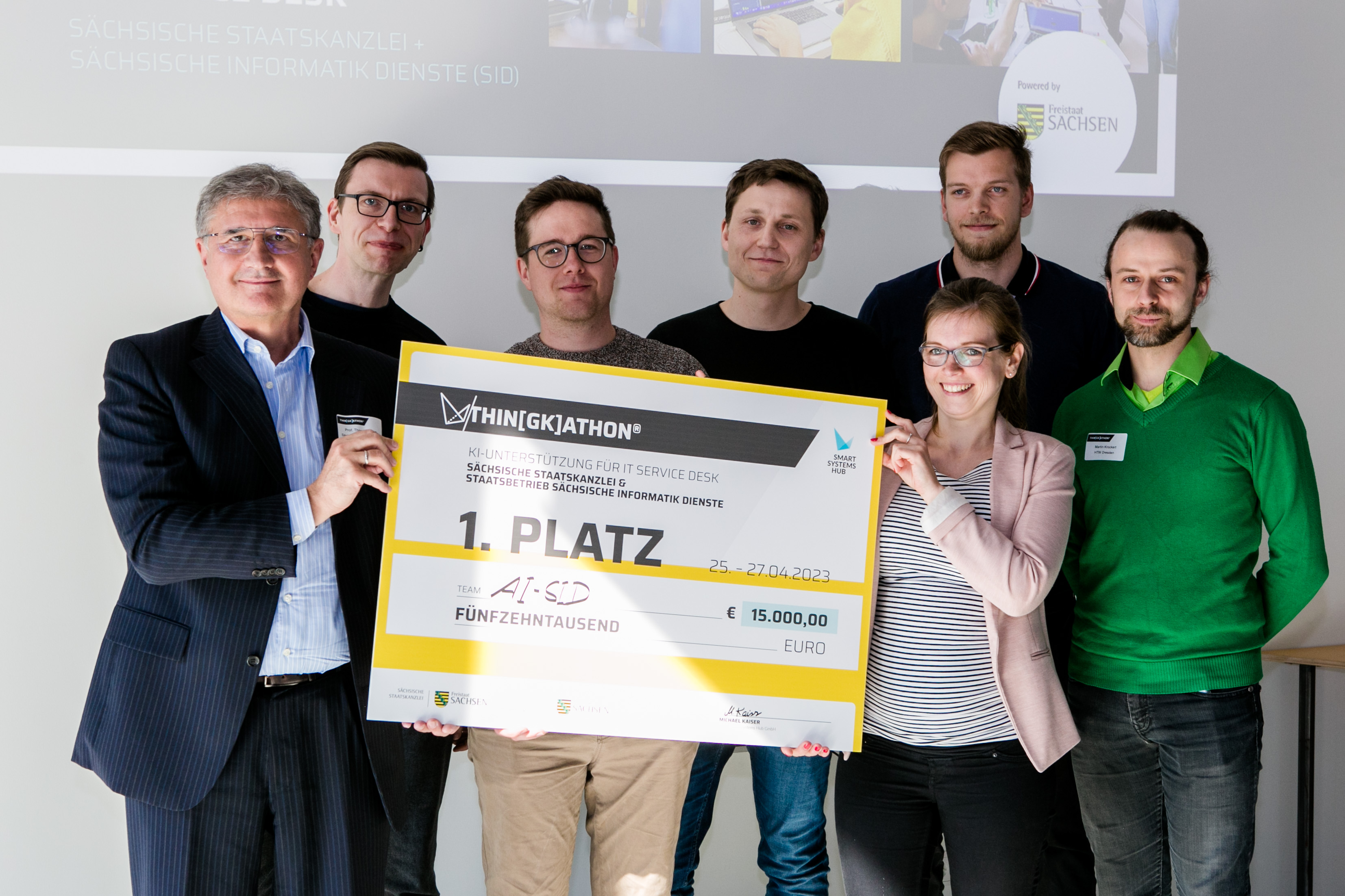 Dresden (28. April 2023) – Die Sächsische Staatskanzlei (SK) und der landeseigene IT-Dienstleister Sächsische Informatik Dienste (SID) veranstalteten einen Wettbewerb zum Einsatz von künstlicher Intelligenz. Bei dem »Thingkathon«, einer »Ideenschmiede« auf Wettbewerbsbasis, waren vom 25. bis 27. April 2023 insgesamt 31 Entwicklerinnen und Entwickler eingeladen. Die Tüftler, die in sechs Teams antraten, sollten für die sächsische Verwaltung einen KI-basierten Lösungsansatz für den IT-Service Desk des SID entwickeln.