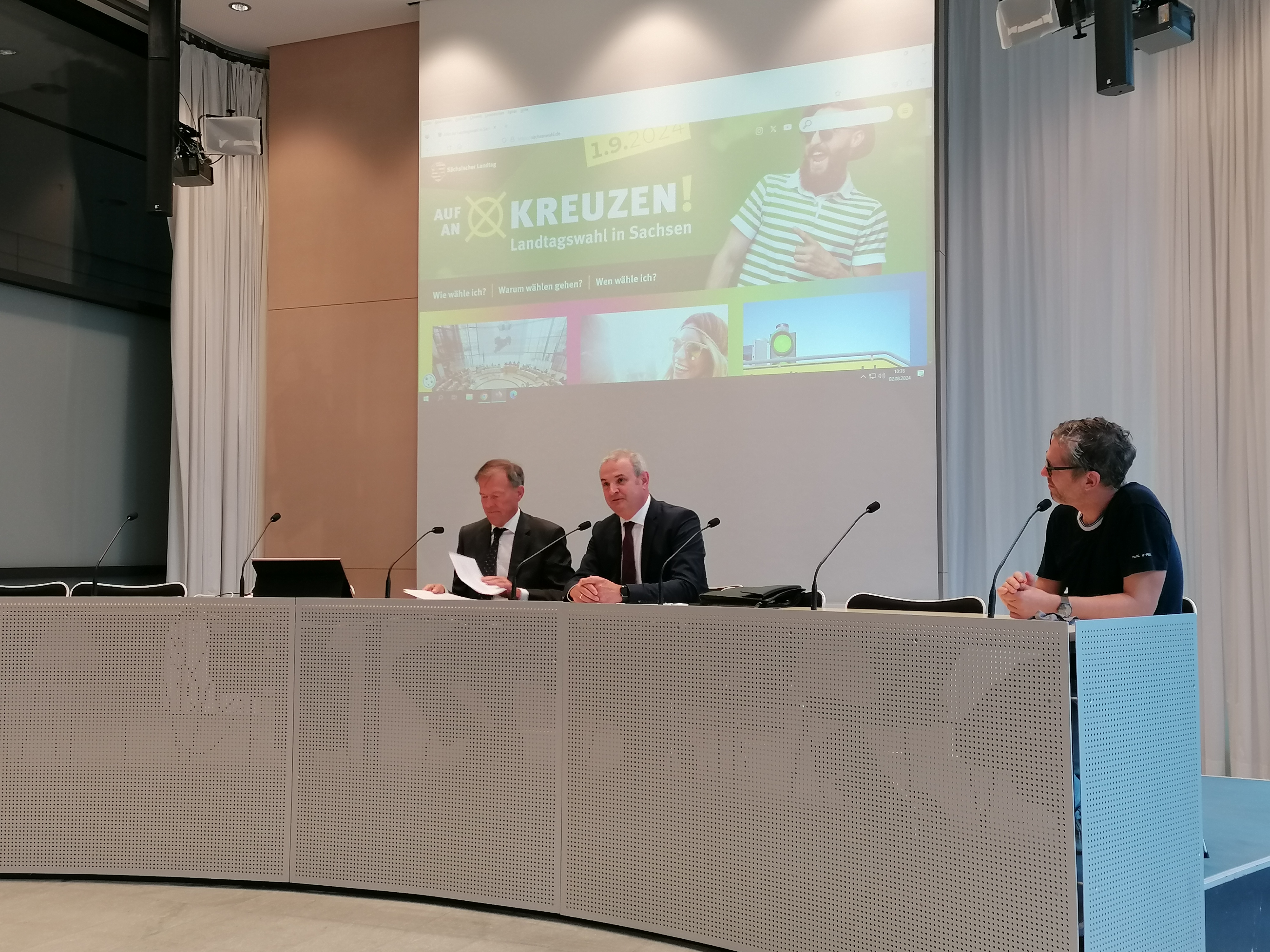 - [Foto] Vorstellung der Broschüre „Wie wir wählen – Landtags-Wahl 2024“ zur Landespressekonferenz in Dresden