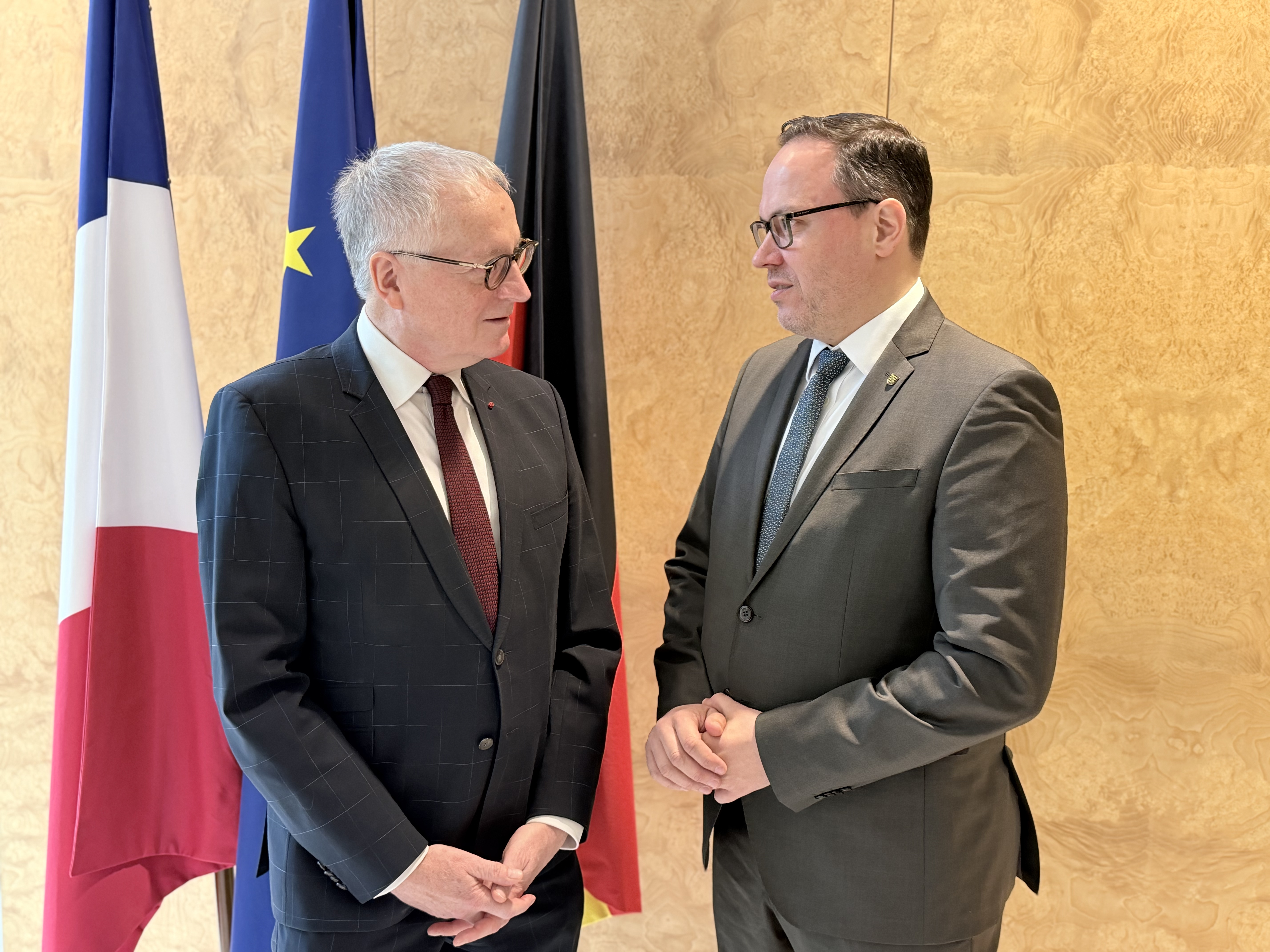 Sachsens Wirtschaftsminister Dirk Panter im Gespräch mit Botschafter der Bundesrepublik Deutschland in Frankreich, Stephan Steinlein