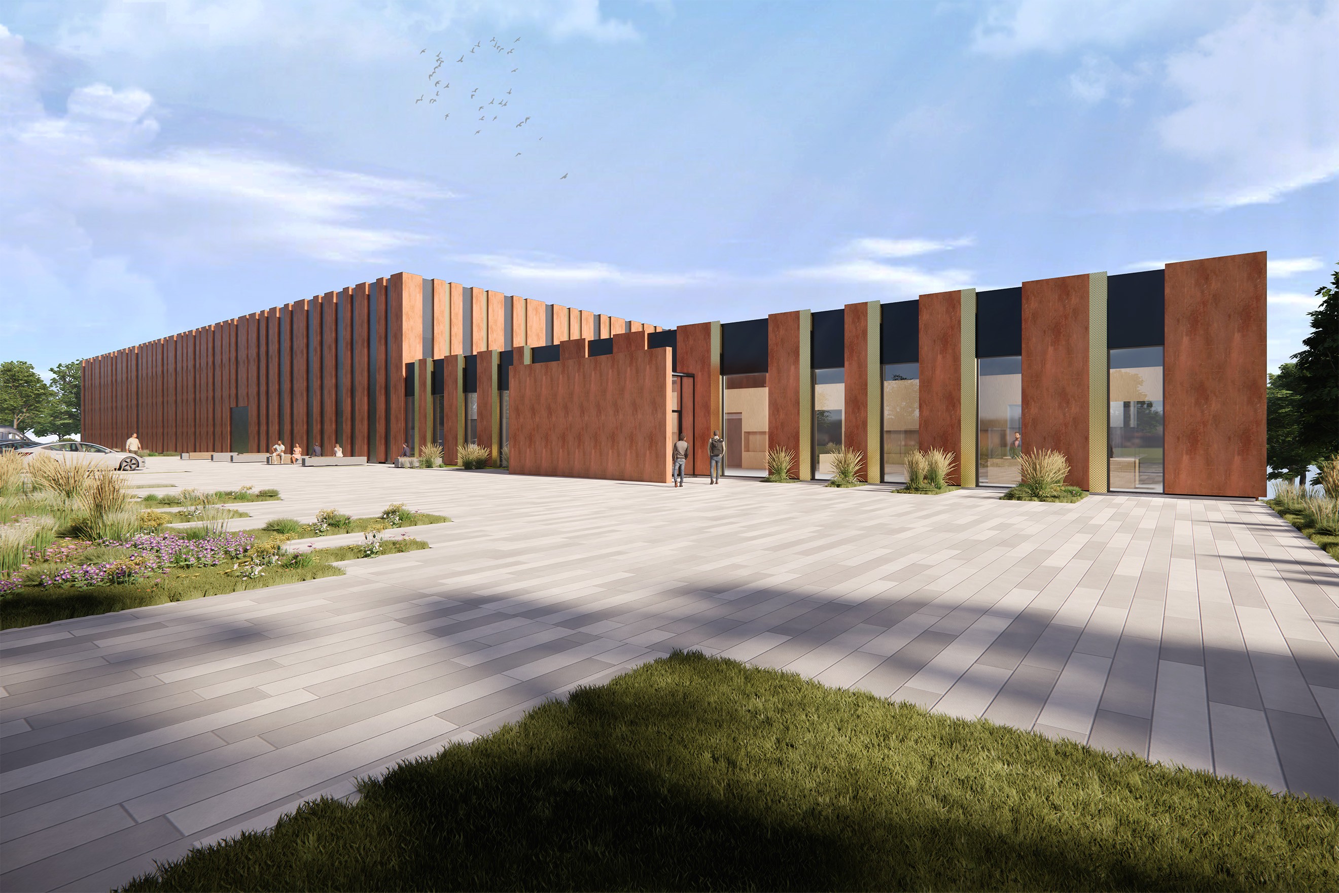 Um die gewaltige Menge an Groß- und Kleinladungsträgern optimal unterzubringen, wurde ein rechteckiger Neubau konzipiert, welcher in drei Gebäudeabschnitten verschiedene Nutzungen und Funktionen des Bohrkern- und Probenarchivs beherbergt. Es entstehen große Verschiebemagazine zur Einlagerung und Archivierung aktueller und zukünftiger Bohrkernbestände und Gesteinsproben, Laborflächen sowie Bereiche zu Forschungs- und Lehrzwecken, welche die Arbeitsweise und Bedeutung der Gesteinsanalytik beschreiben und fortführen. Im Zuge des Neubaus werden auch die Außenanlagen auf der Ostseite des ehemaligen Kasernenhofs komplett neugestaltet. Zudem werden spezielle Bereiche für die Anlieferung der Proben per LKW eingerichtet.