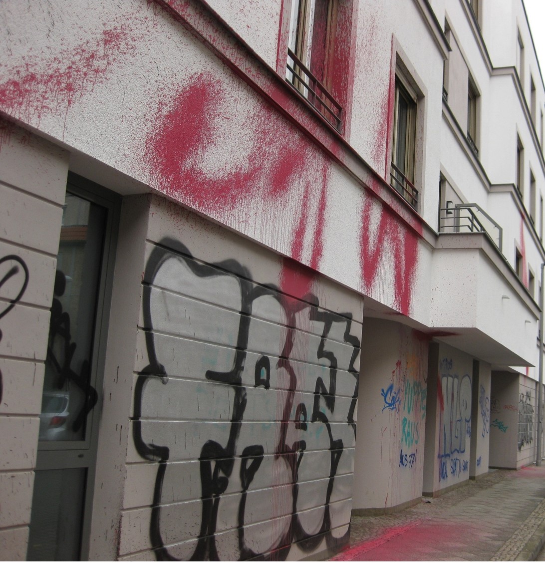 In der Nacht zum 26.März 2019 griffen unbekannte Täter einen Gebäudekomplex im Leipziger Stadtteil Connewitz an, indem sie das Haus vom Erdgeschoß bis in die zweite Etage großflächig mit Farbe besprühten. In der Nacht vom 28. zum 29. März 2019 beschädigten die Unbekannten wieder die Außenfassade dieses Gebäudes sowie zwei davor parkende Fahrzeuge durch Farbschmierereien. Die geschädigte Wohnungsgesellschaft beziffert den Sachschaden auf insgesamt ca. 20.000 Euro.