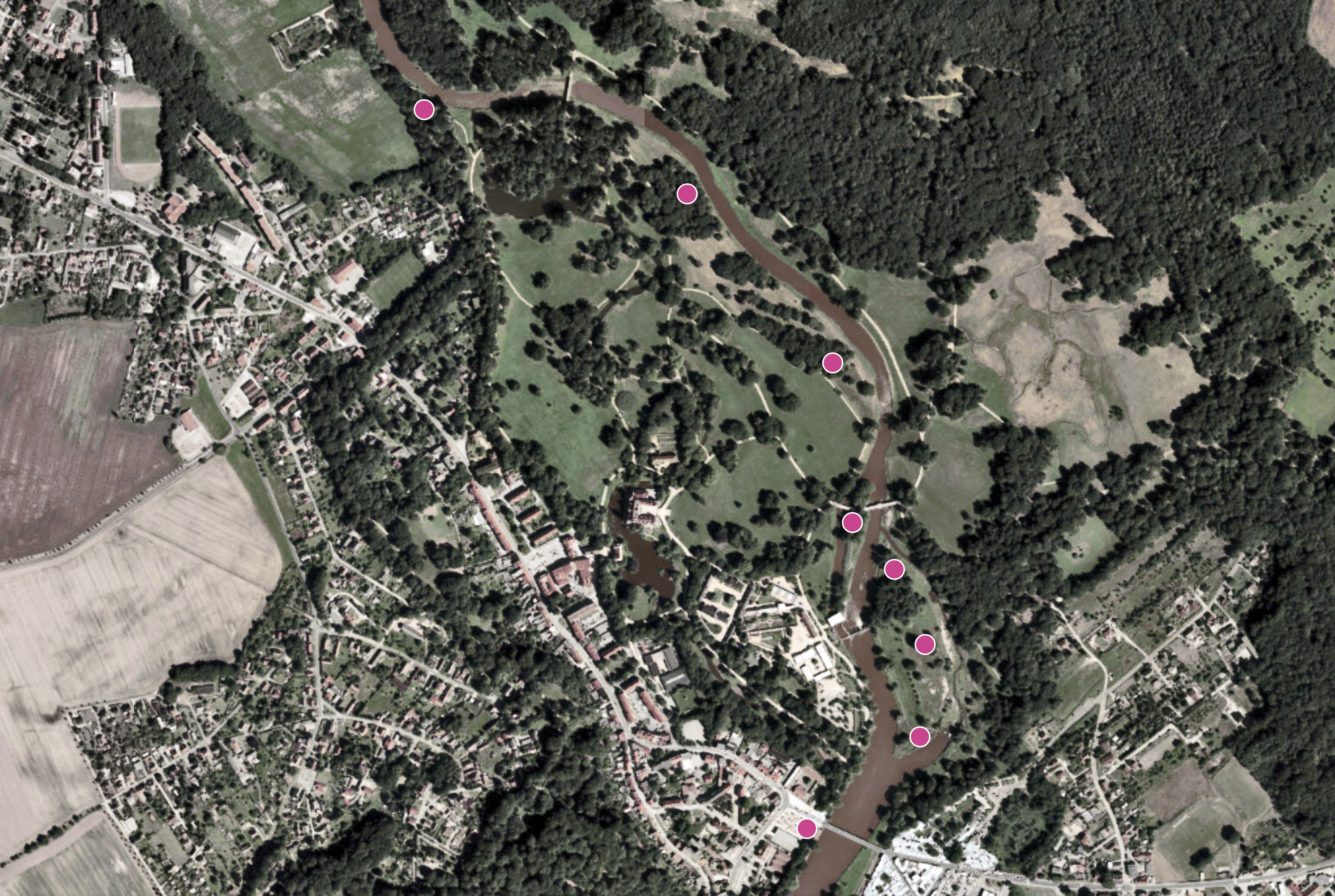 Die alten Grenzzeichen sind ein reizvolles Ziel für einen Sommer-Ausflug nach Bad Muskau. Eine dieser Markierungen steht auf der Jeanetteninsel an der Doppelbrücke, vier andere auf den Parkwiesen entlang der Lausitzer Neiße. Sie alle sind frei zugänglich und zum Teil von den Wegen aus zu sehen. Drei Säulen befinden sich auf der Wehrinsel und können nur aus der Ferne betrachtet werden.