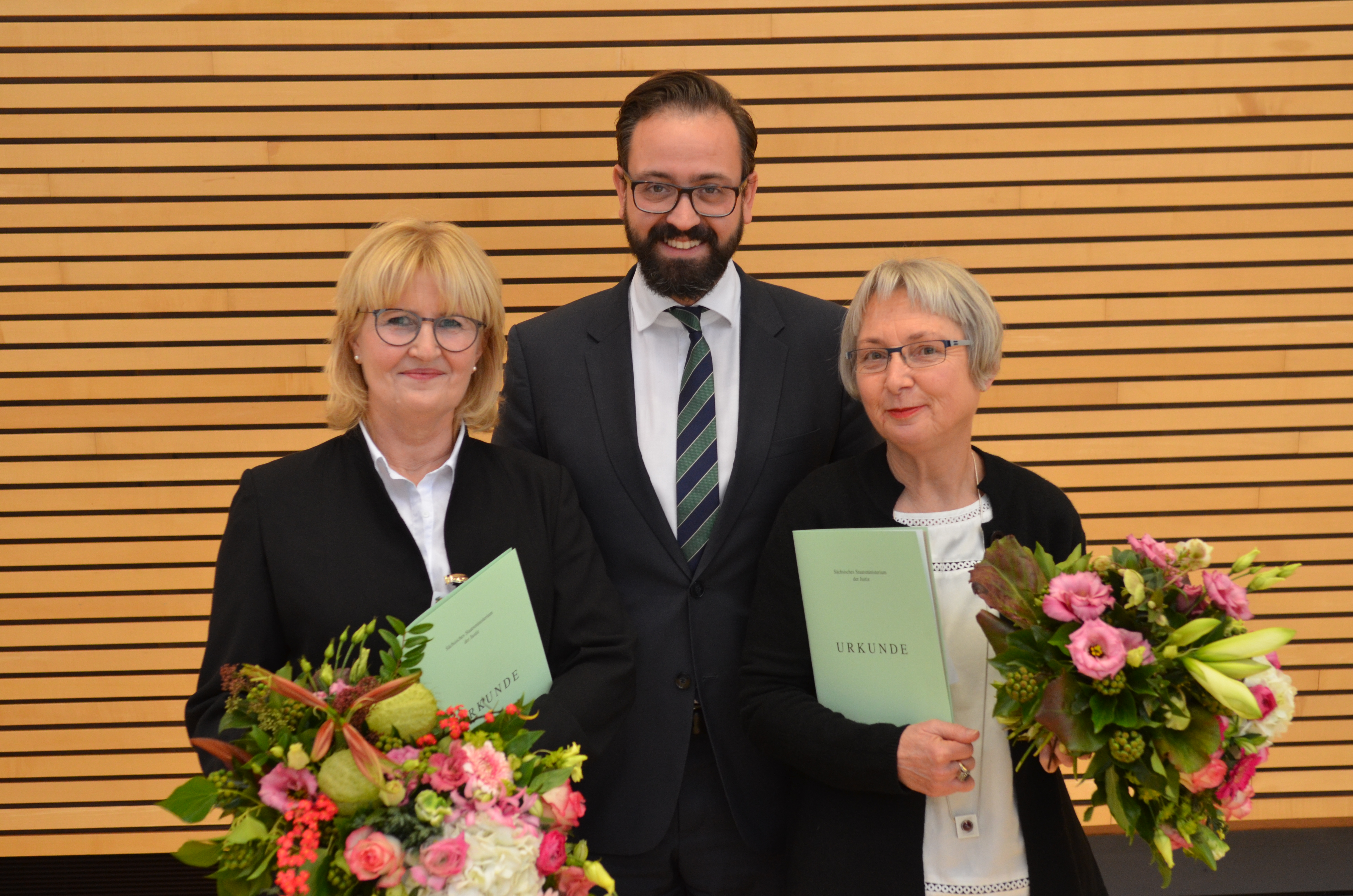 Foto: Justizminister Gemkow mit der Vorsitzenden Richterin am Landgericht Herberger (links) und der Richterin am Oberlandesgericht Luderer