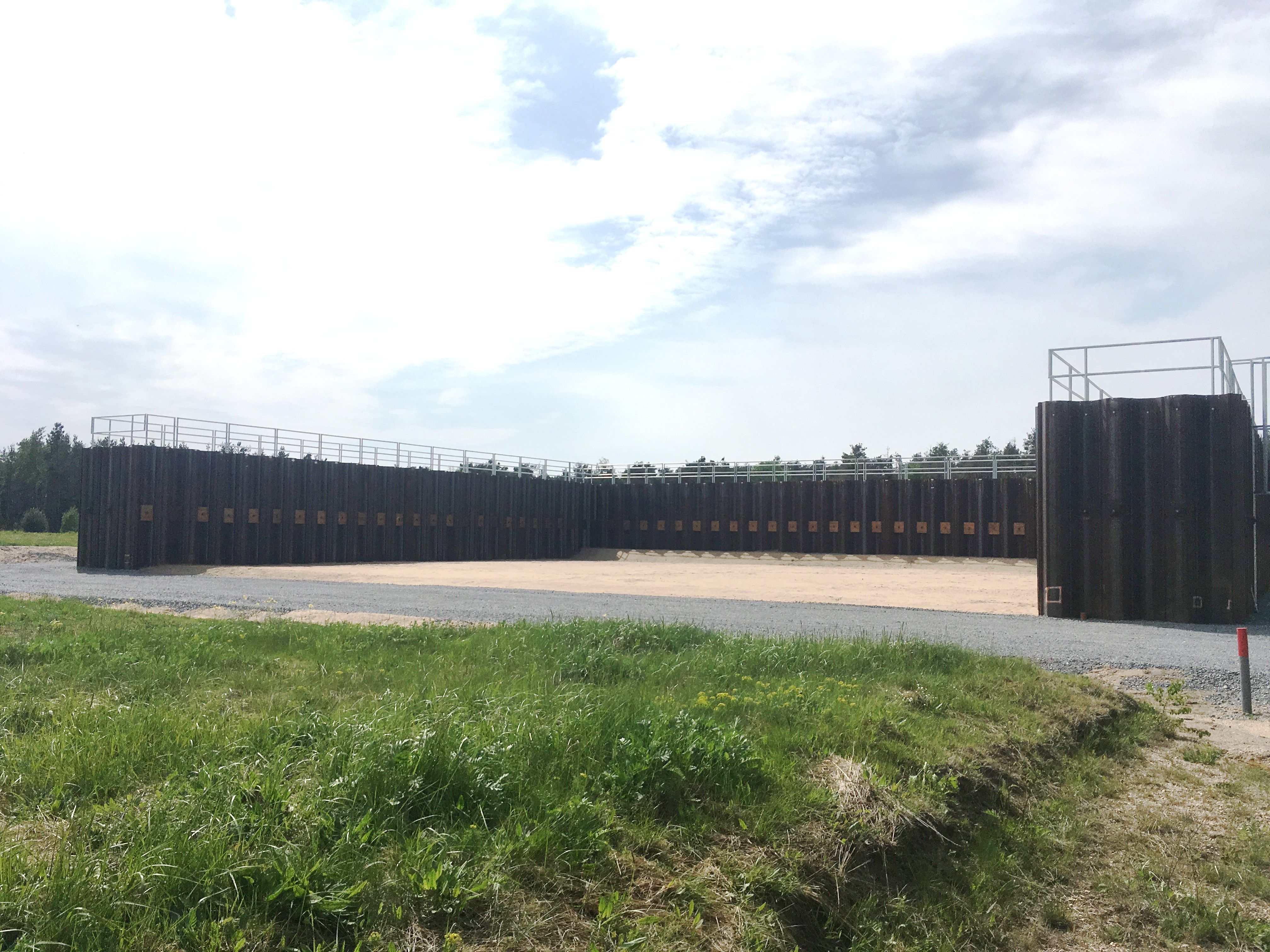 Neuer Sprengplatz mit Fangedämmen als Spundwandkonstruktion (35x40x5 Meter) zur sicheren Ausführung von Gefahren- und Übungssprengungen