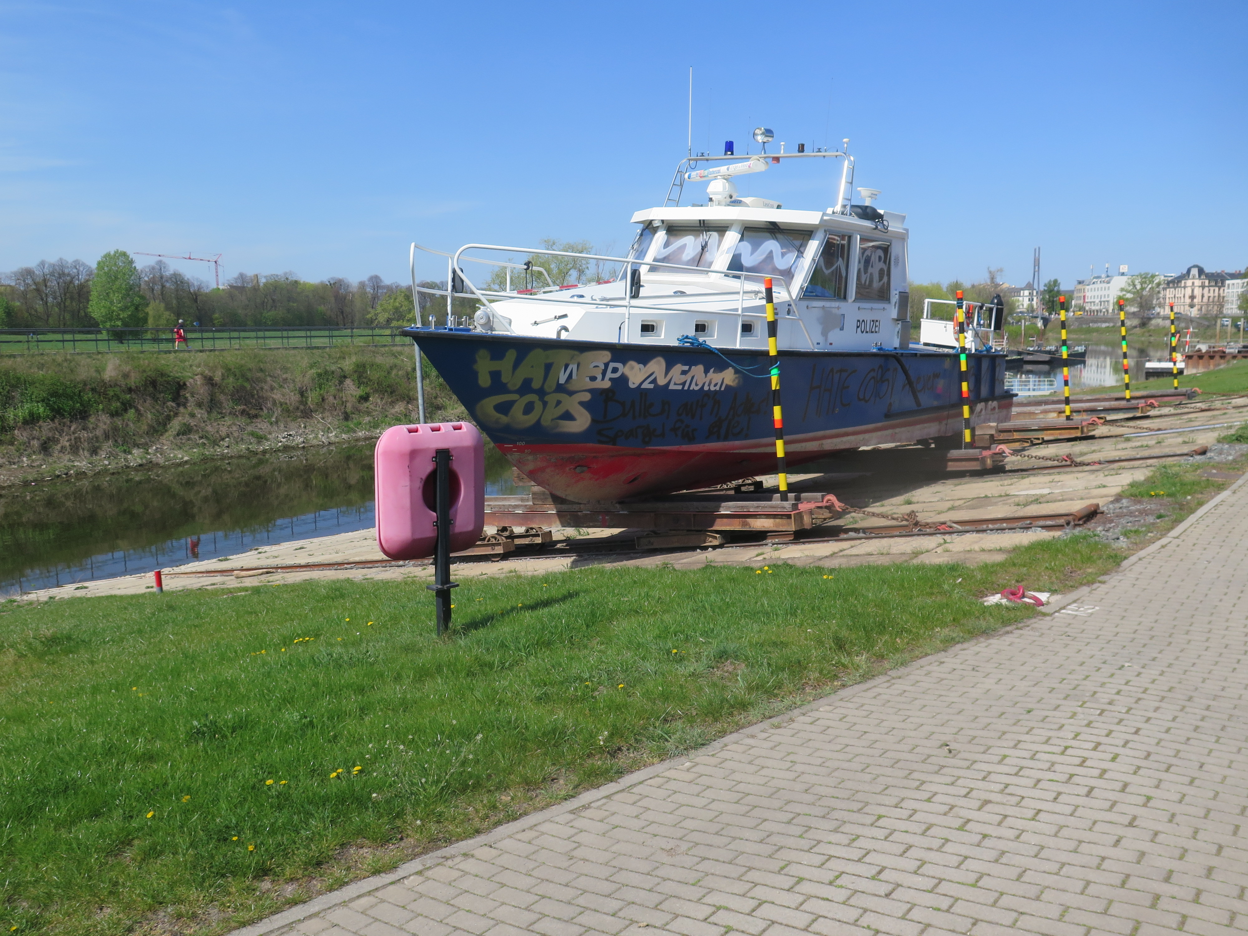 Besprühtes Boot WSP Sachsen_1 (© Polizei Sachsen)