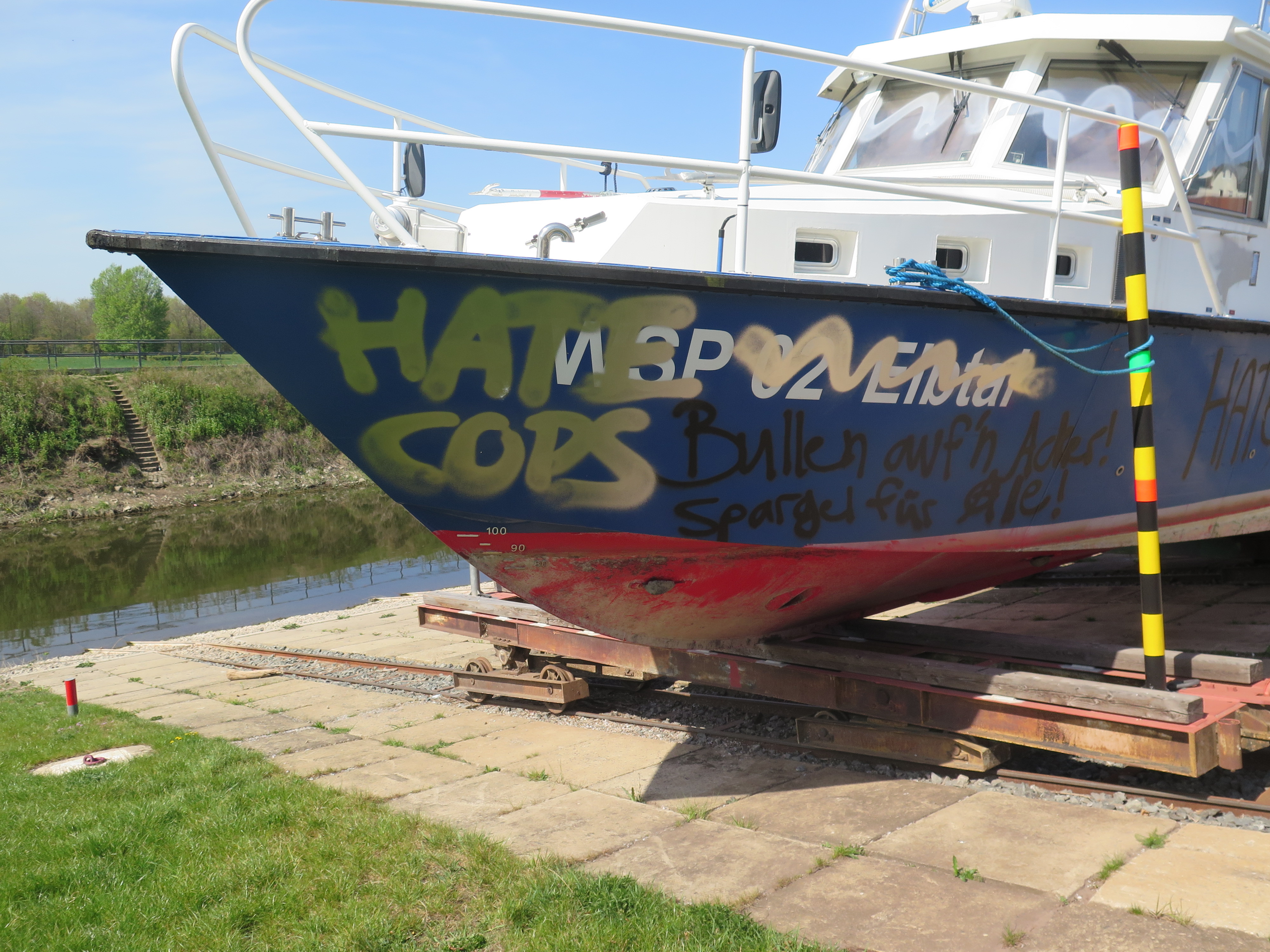 Foto: Besprühtes Boot WSP Sachsen_2