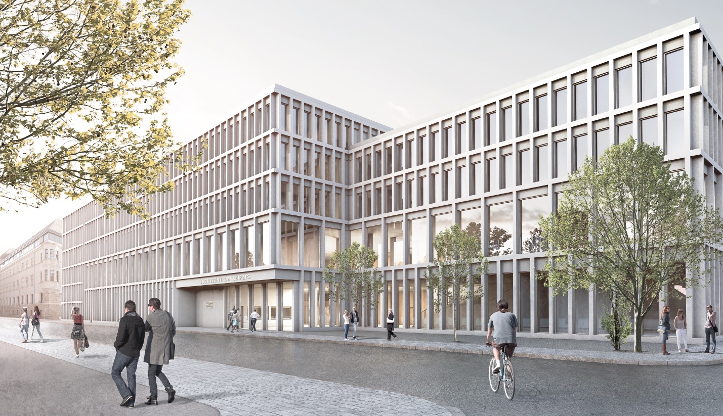 Visualisierung: Perspektive Haupteingang Fachgerichtszentrum Leipzig