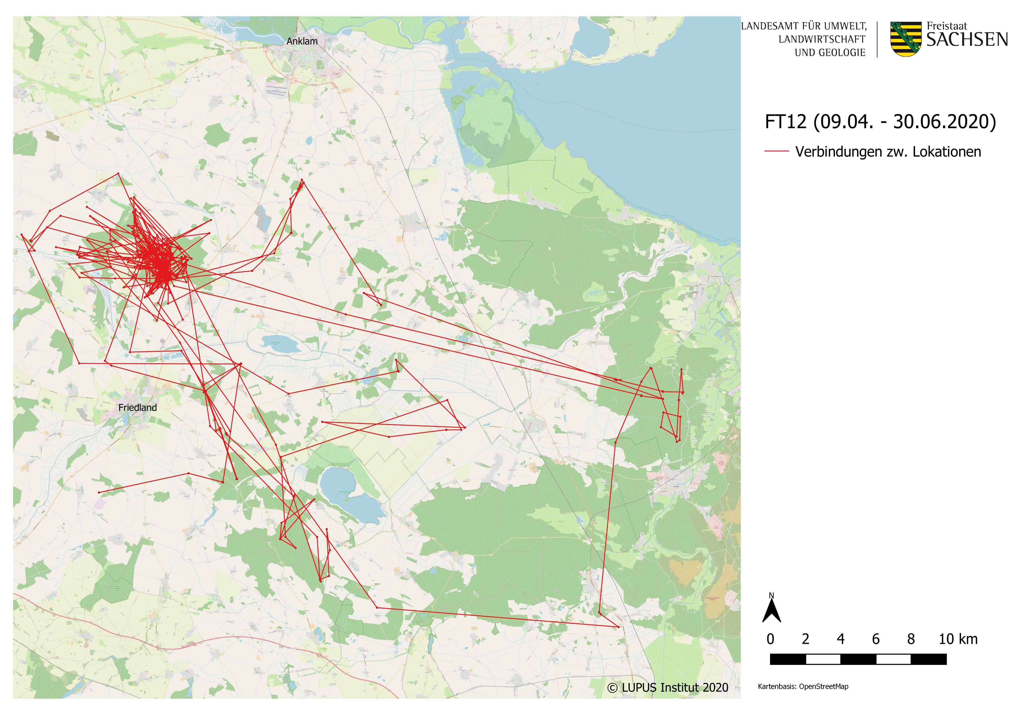 Bewegungsmuster der besenderten Wölfin FT12 "Juli" (© LUPUS)