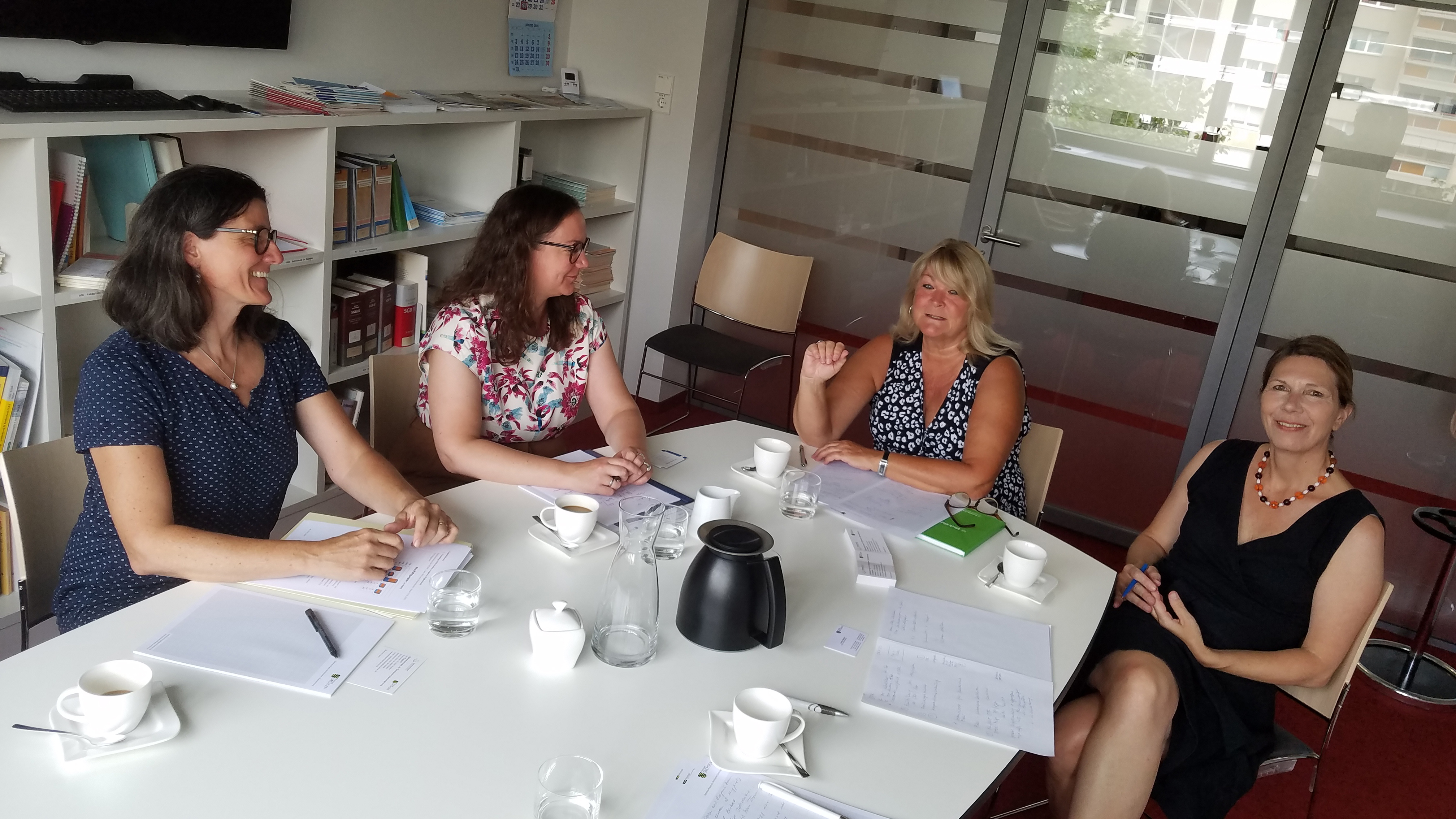 Iris Kloppich berät sich mit Vertreterinnen der Ostdeutschen Psychotherapeutenkammer zur besseren Einbeziehung und Vernetzung im Hilfesystem.