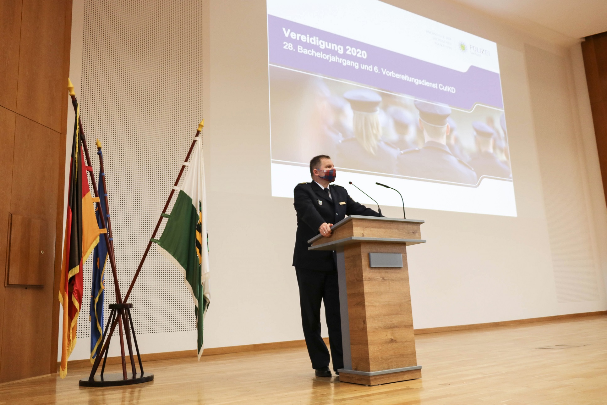 Rektor Carsten Kaempf begrüßt die Studierenden des 28. Bachelorstudienganges zur Vereidigung