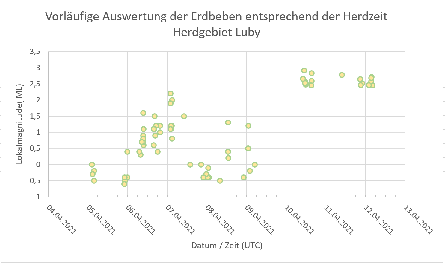 Foto: Vorläufige Auswertung der Erdbeben nach der Herdzeit