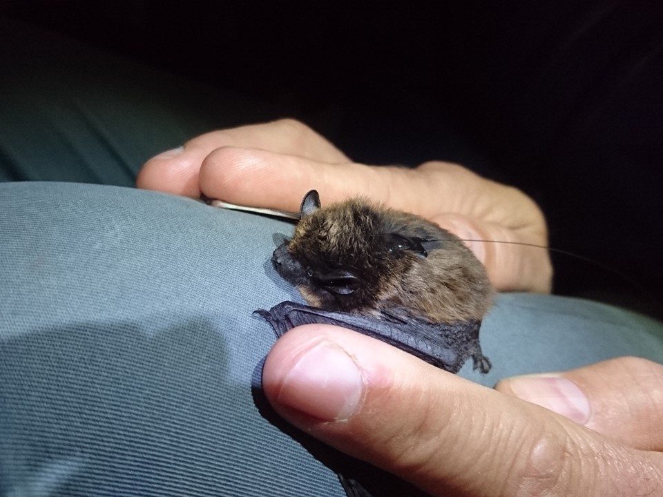 Im Rahmen der wissenschaftlichen Untersuchung ist eine Alpenfledermaus besendert und beringt worden. Ziel ist es, herauszufinden, in welchem Umkreis sich die Fledermaus bewegt.