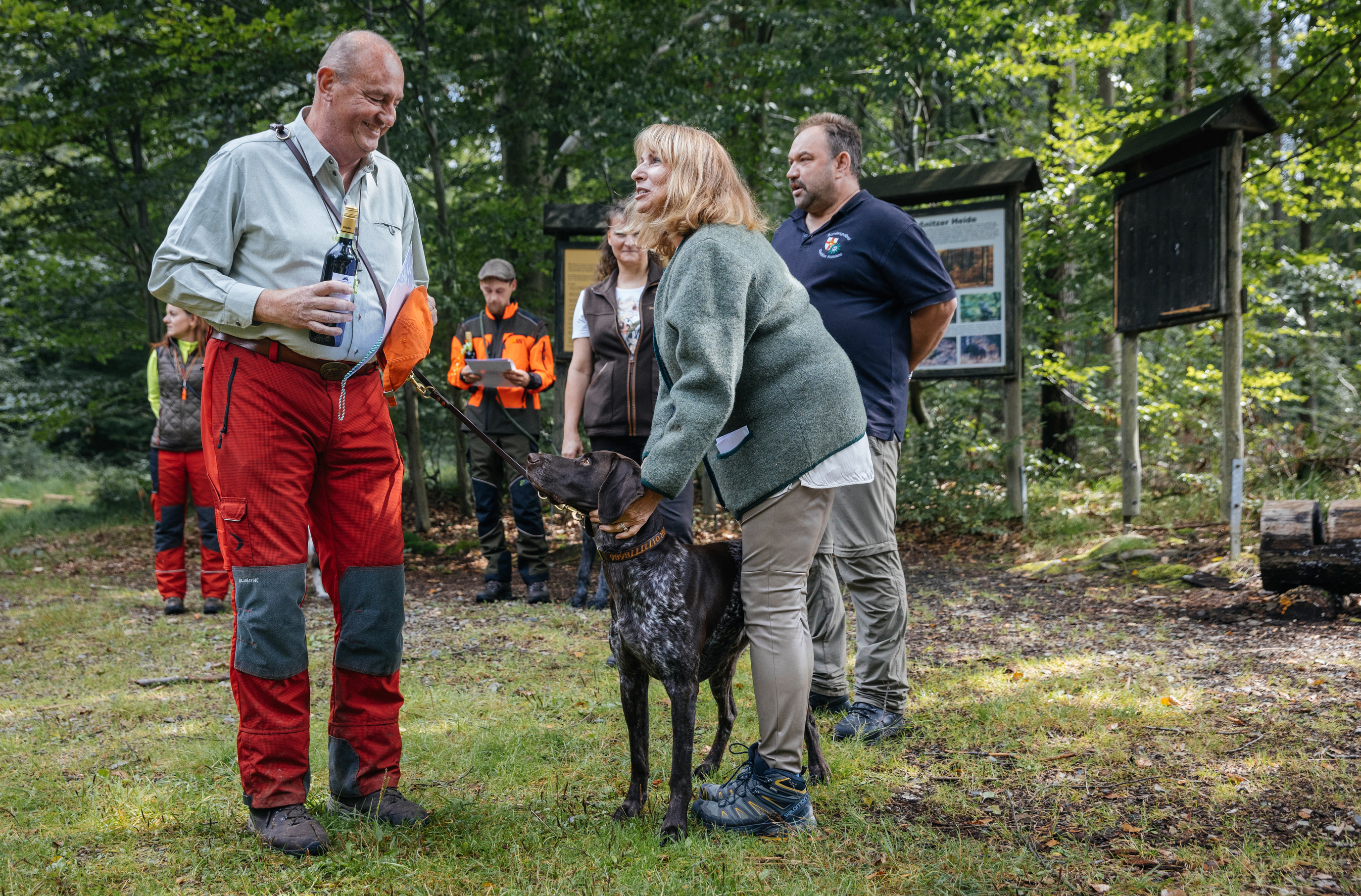 Acht Hunde und ihre Halterinnen und Halter haben eine Weiterbildung zur Kadaversuchhunde abgeschlossen und werden nun bei der Bekämpfung der Afrikanischen Schweinepest eingesetzt. Staatsministerin Petra Köpping hat die Abschlusszertifikate übergeben.