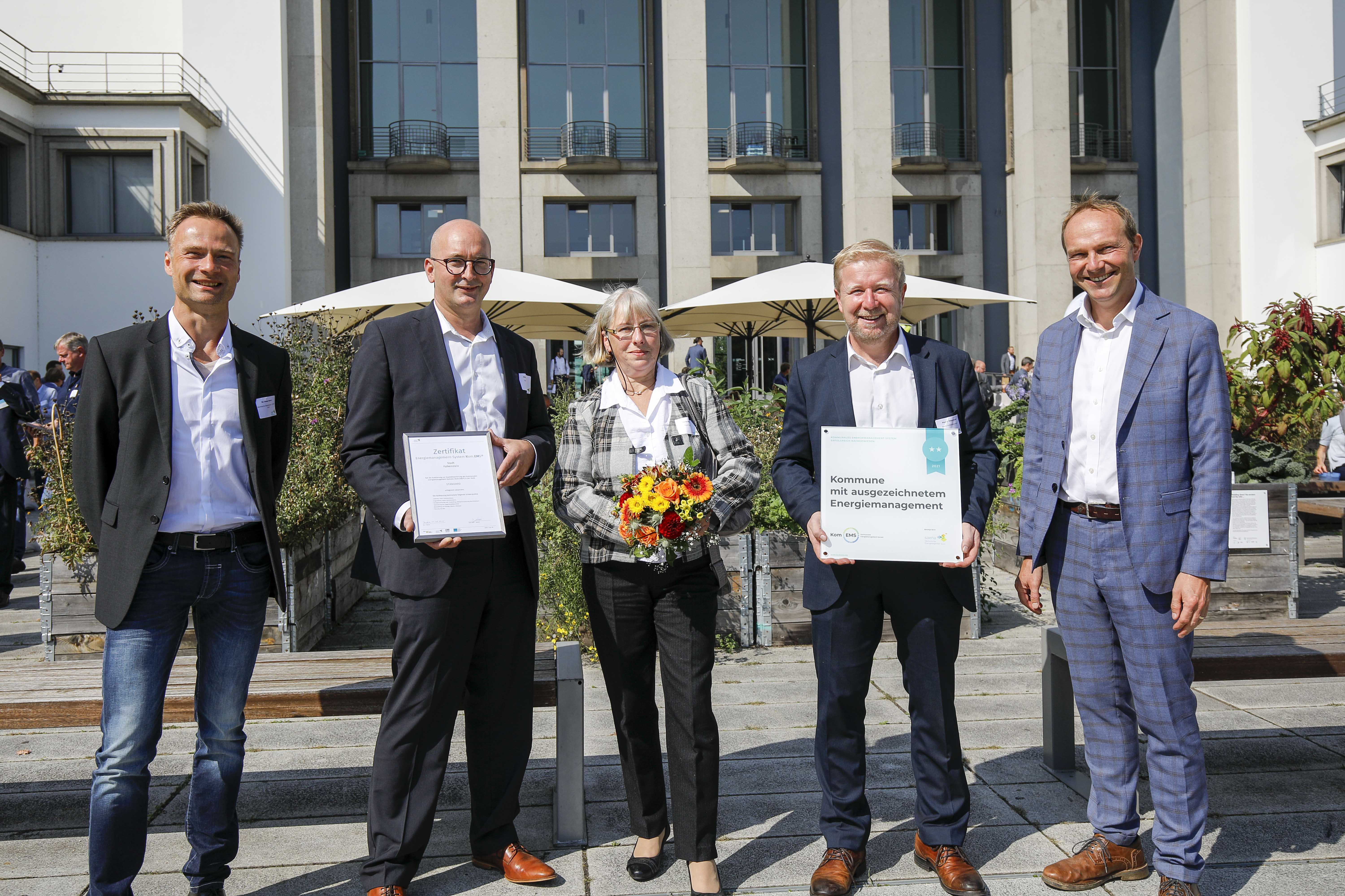 Foto: Ausgezeichnete Kommune Stadt Falkenstein mit Staatsminister Wolfram Günther, SMEKUL