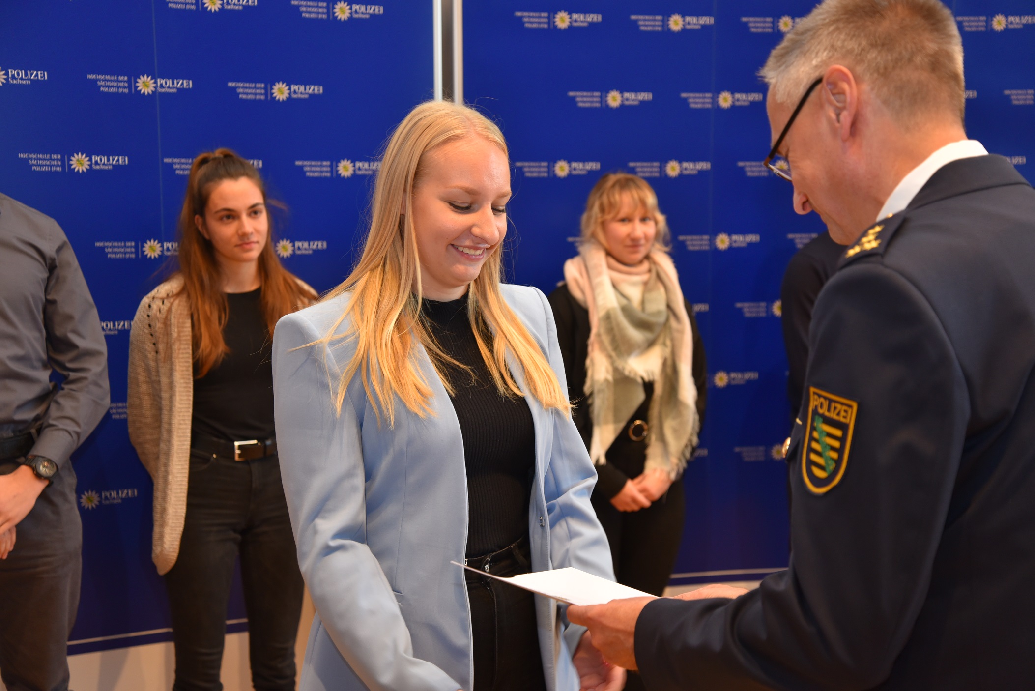 Prorektor Hanjo Protze ernennt eine Kommissaranwärterin in das Dienstverhältnis einer Beamtin auf Widerruf