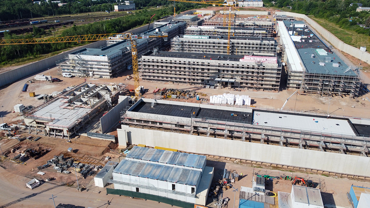 Bild 1: Blick aus der Luft auf die Baustelle der JVA Zwickau-Marienthal. (© David Nuglisch)