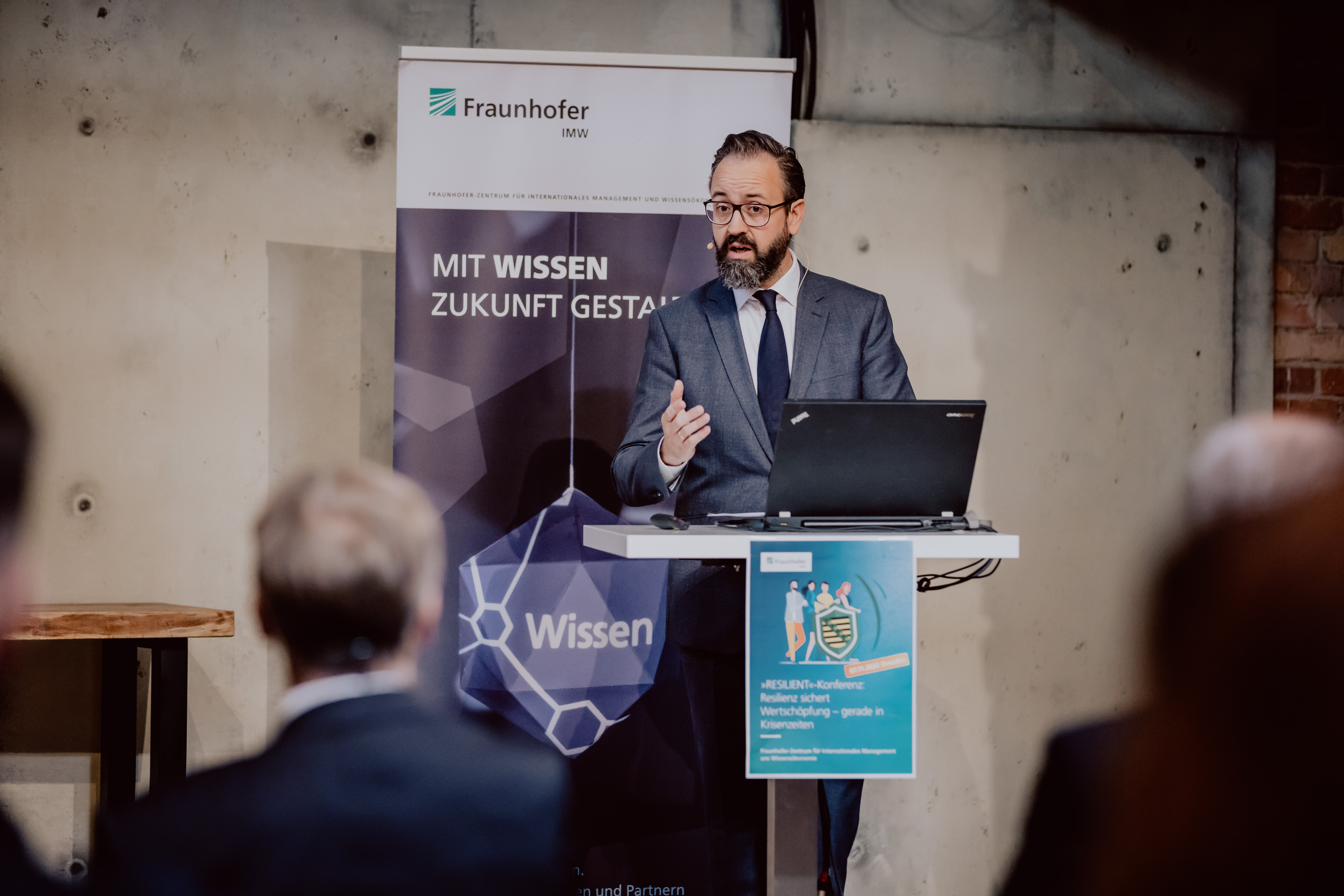 Wissenschaftsminister Sebastian Gemkow spricht bei der Fachveranstaltung des Fraunhofer IMW (© Ben Gierig)