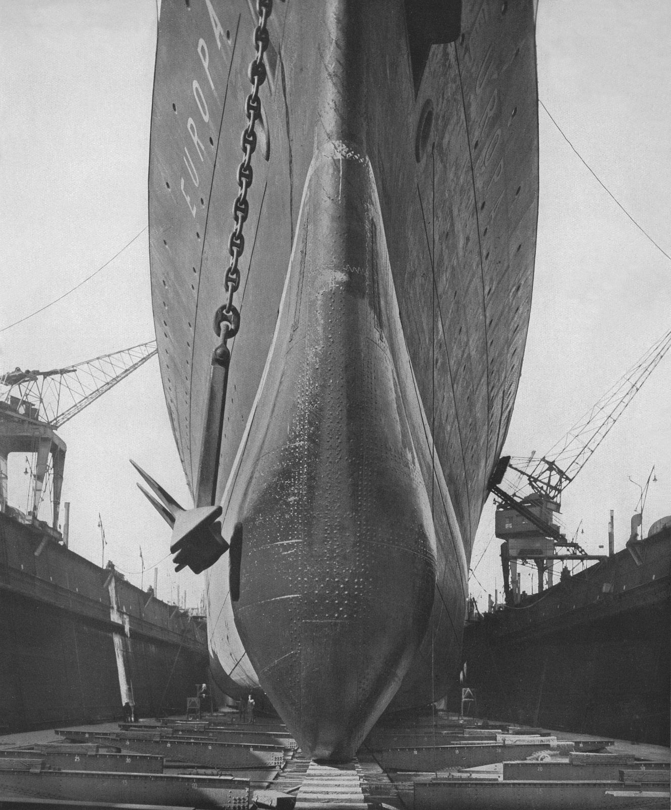 Fritz Block: Hamburg, Turbinendampfer Europa im Schwimmdock der Werft Blohm & Voss, 1929 (© Deutsche Fotothek / Fritz Block)