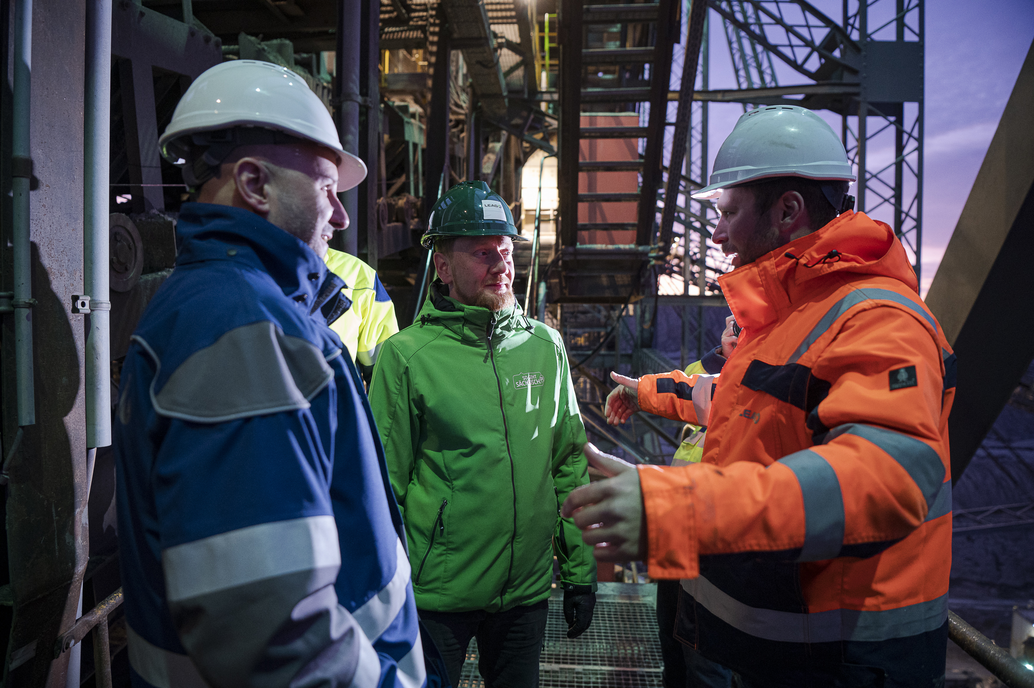 Ministerpräsident Michael Kretschmer besucht den Tagebau Nochten.