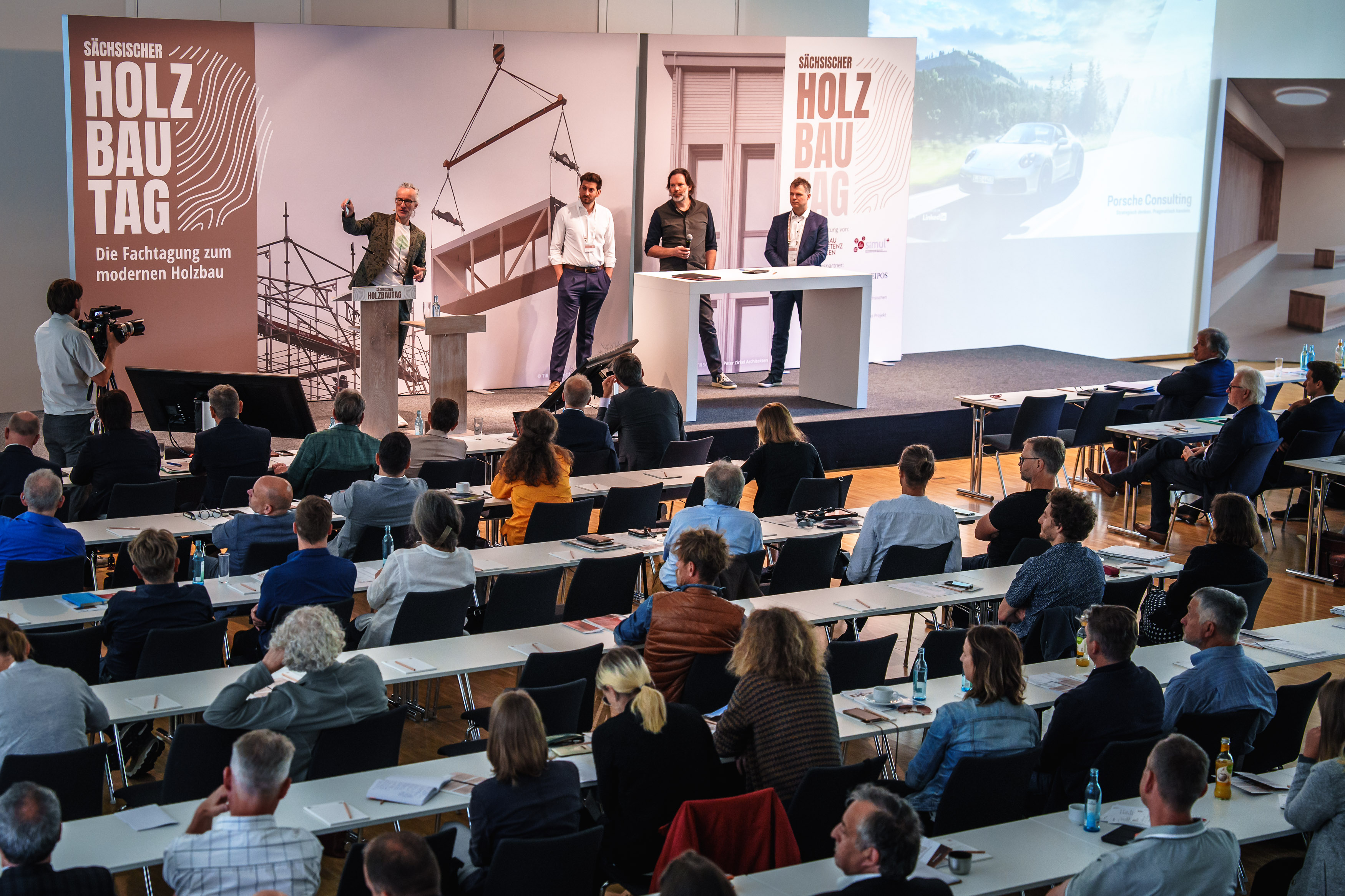 Foto: Tagungsatmosphäre auf dem 1. Sächsischen Holzbautags am 28. Juni 2023 in der MESSE DRESDEN