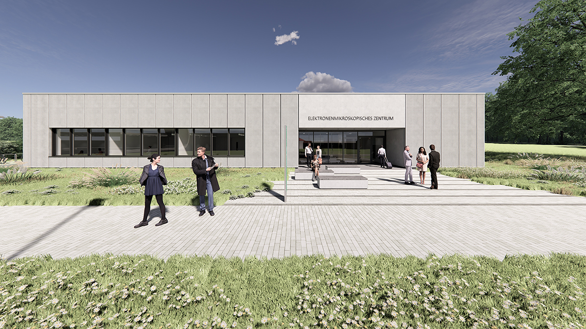 Visualisierung des neuen Elektronenmikroskopischen Zentrums der TU Chemnitz (© Heinle Wischer Partnerschaft freier Architekten mbB)
