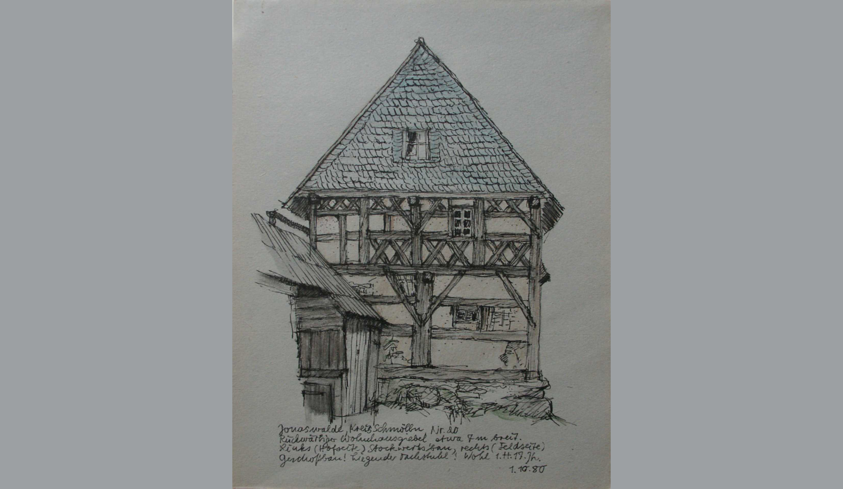 Jonaswalde, Kreis Schmölln, Zeichnung von Jochen Helbig, 1980 (© Landesamt für Denkmalpflege Sachsen)