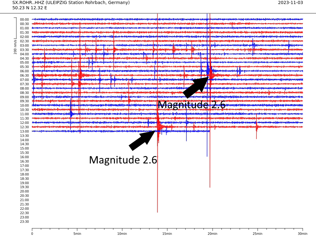 Seismogramm Station Rohrbach (© LfULG)