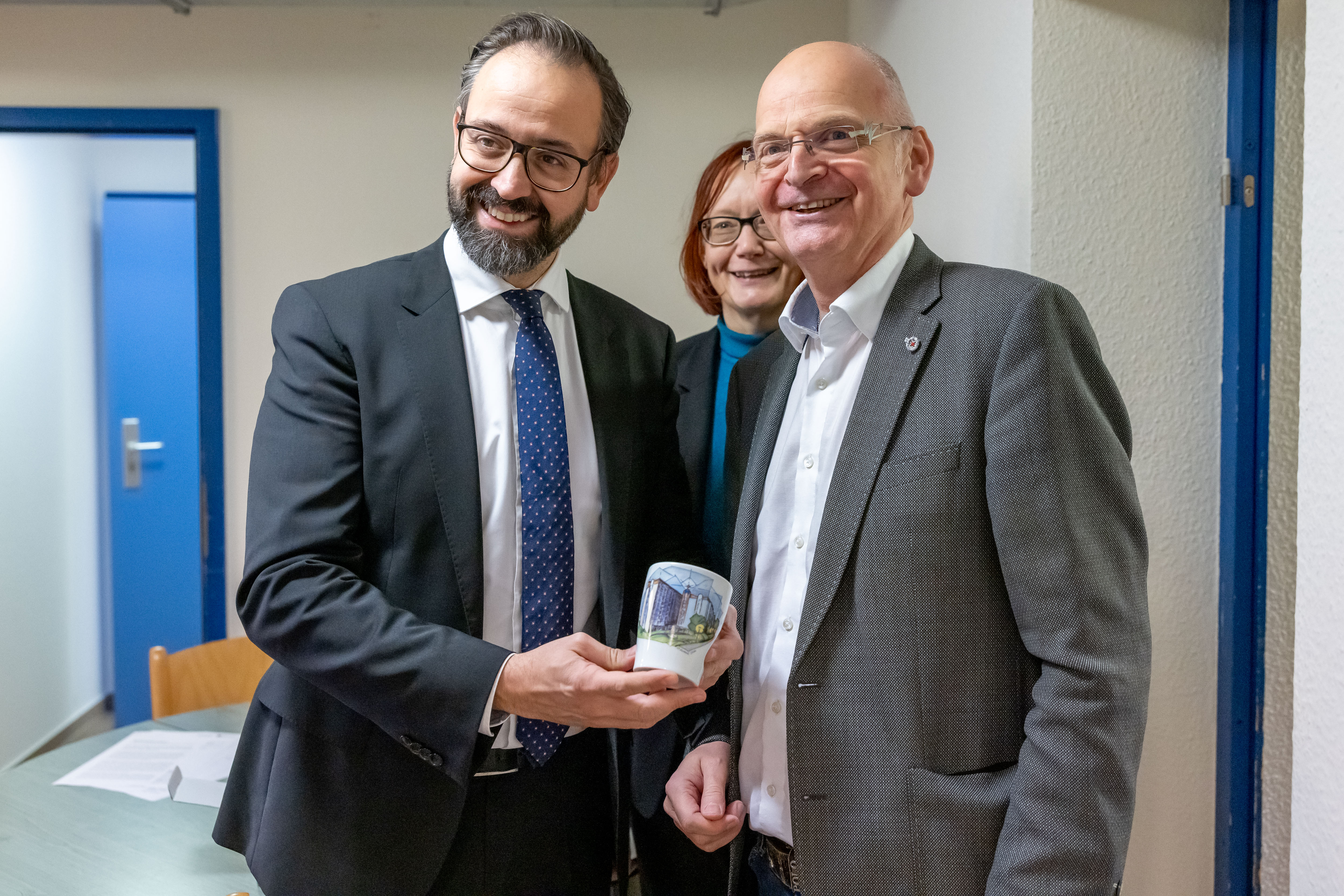 Wissenschaftsminister Sebastian Gemkow (links) mit dem Geschäftsführer des Studentenwerks Freiberg Thomas Schmalz